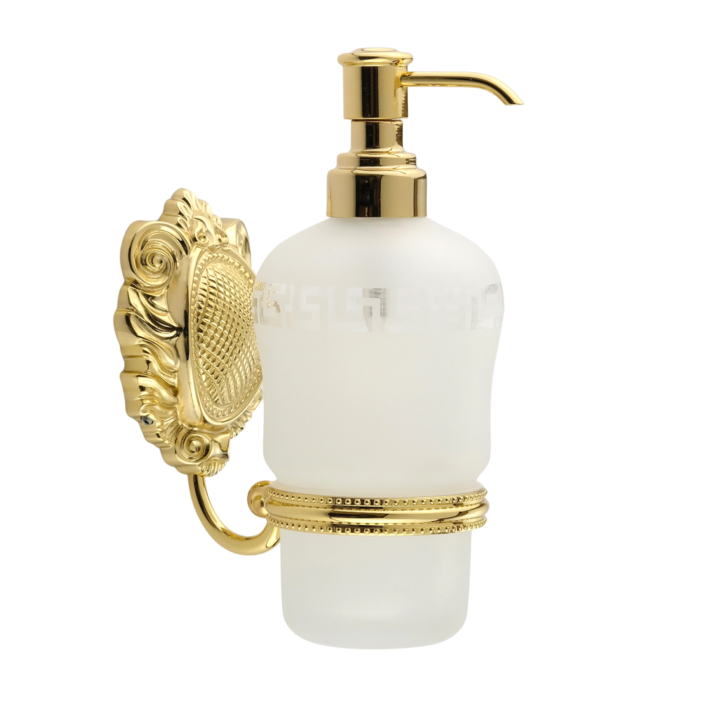 Towel holder with two swivelling arms and with dispenser, frosted glass with decor