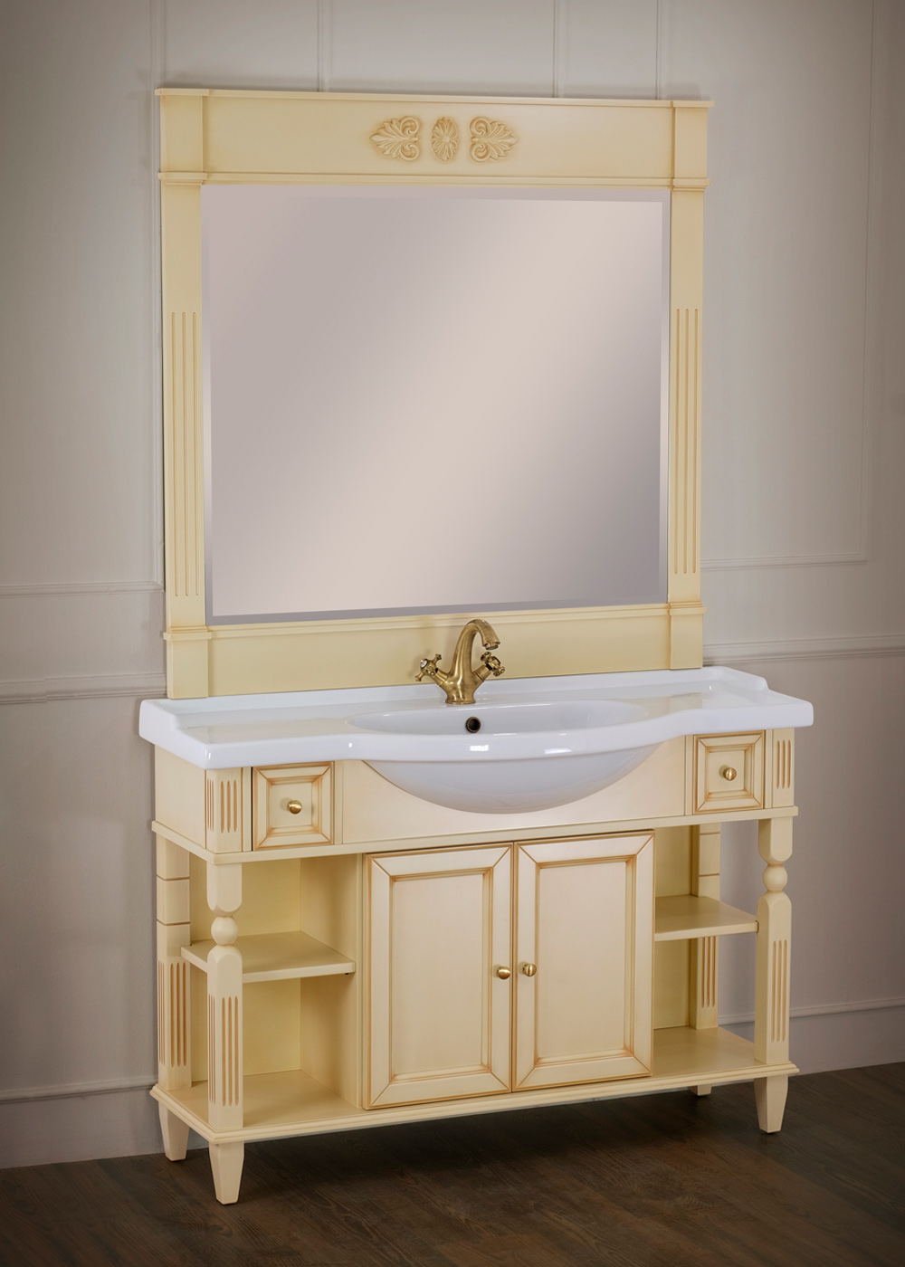 The price includes the cost of a Cabinet, countertop, mirror and two sinks,