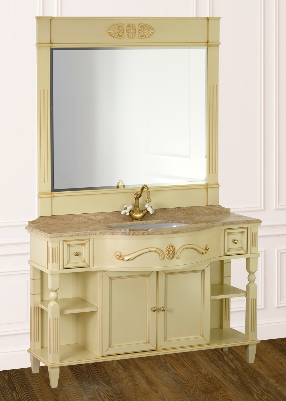 The price includes the cost of a Cabinet, countertop, mirror and two sinks,