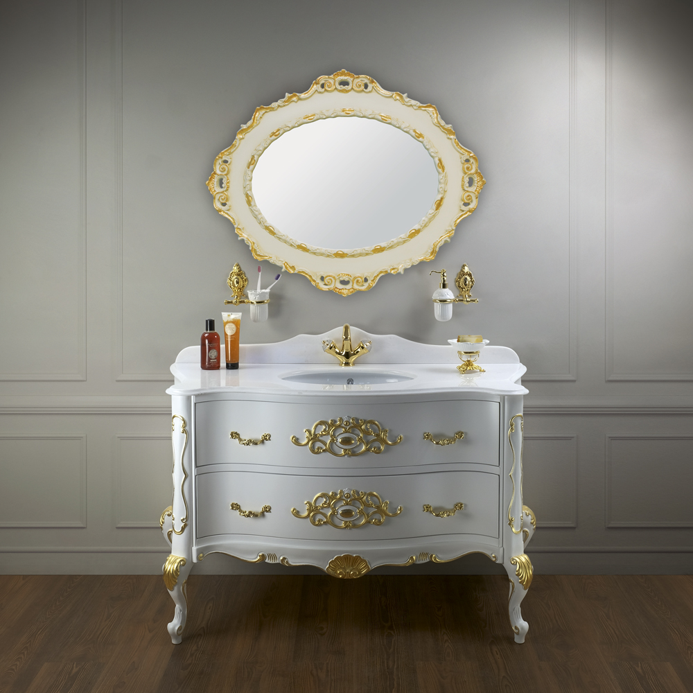 Marble top, washbasin furniture, L180 cm, Virginia, light walnut