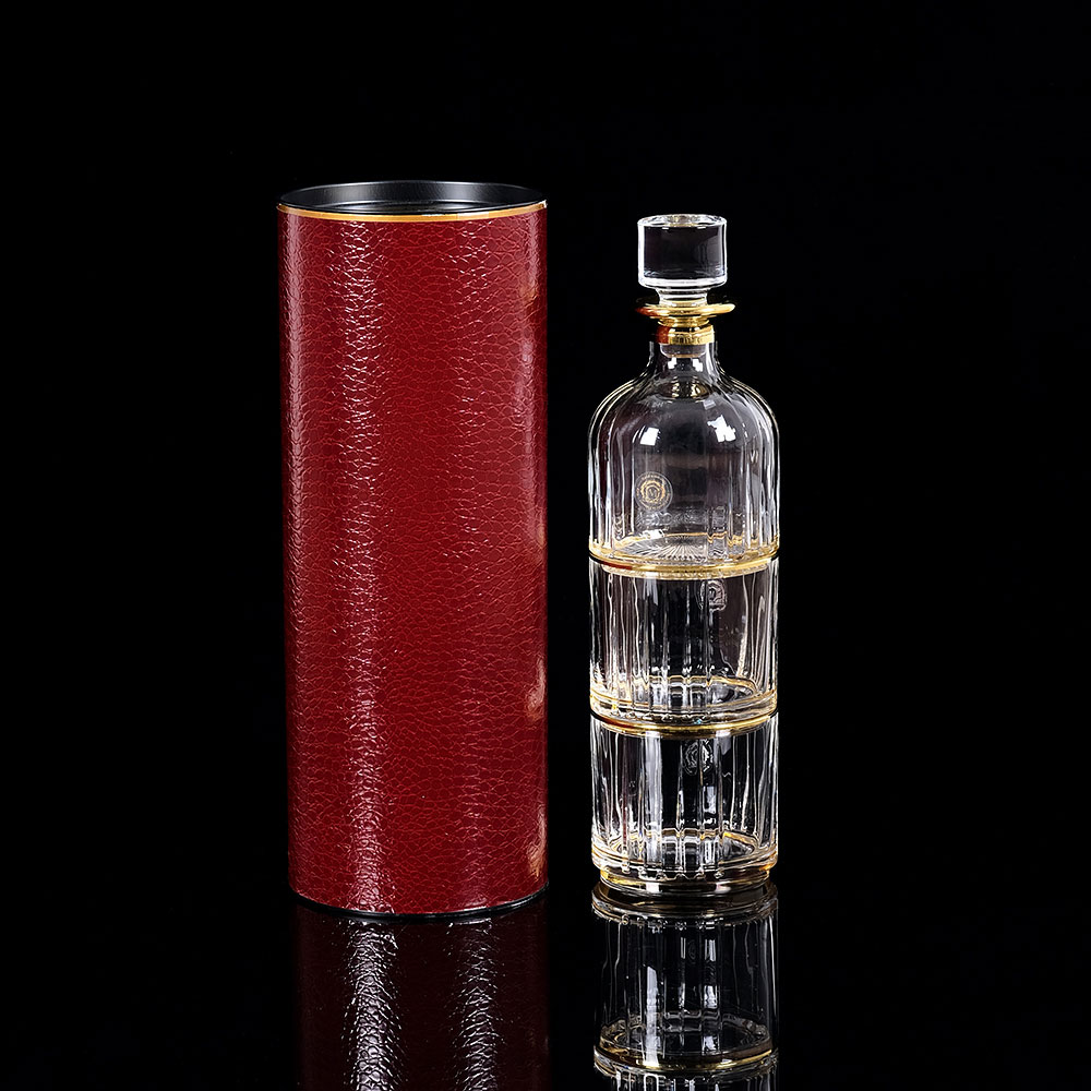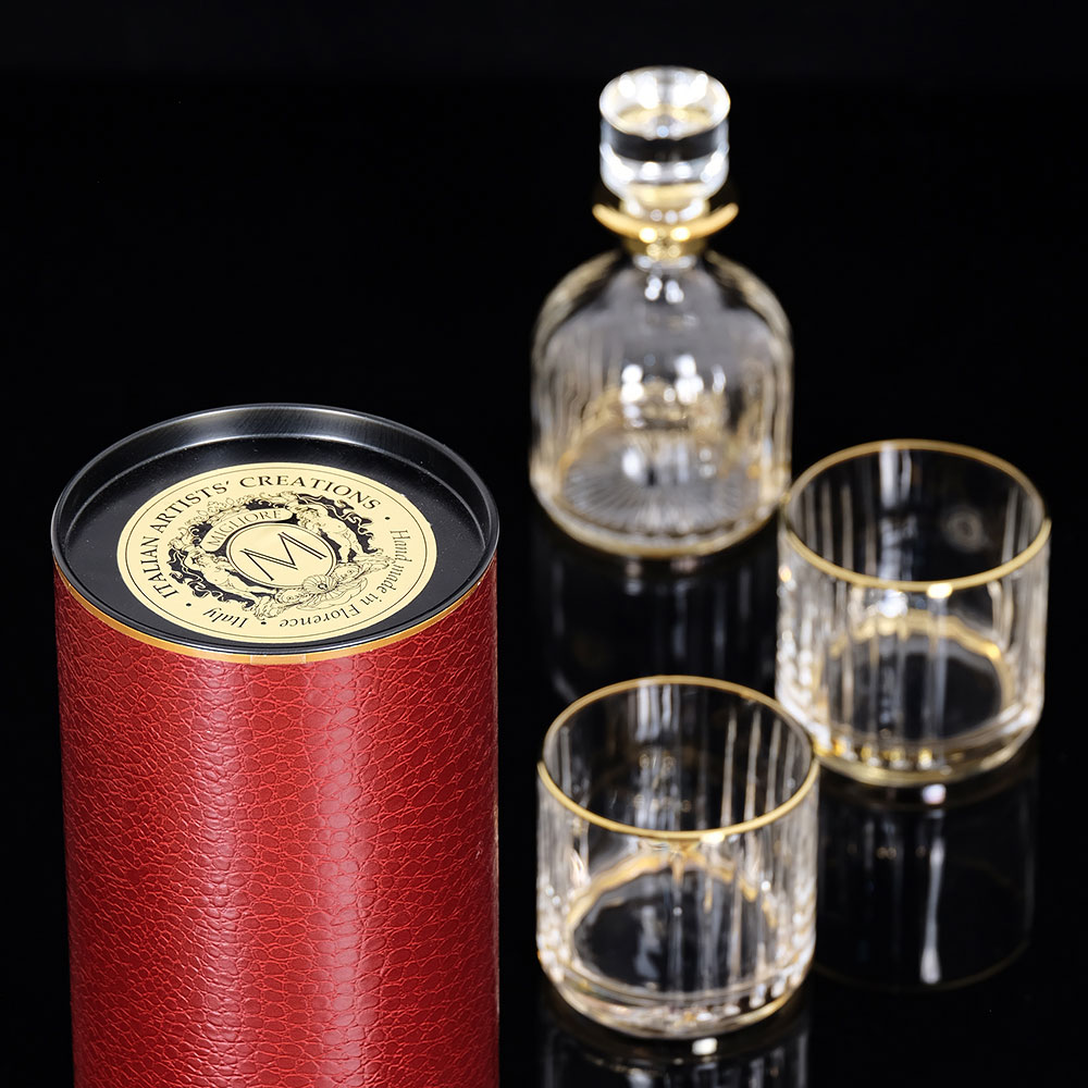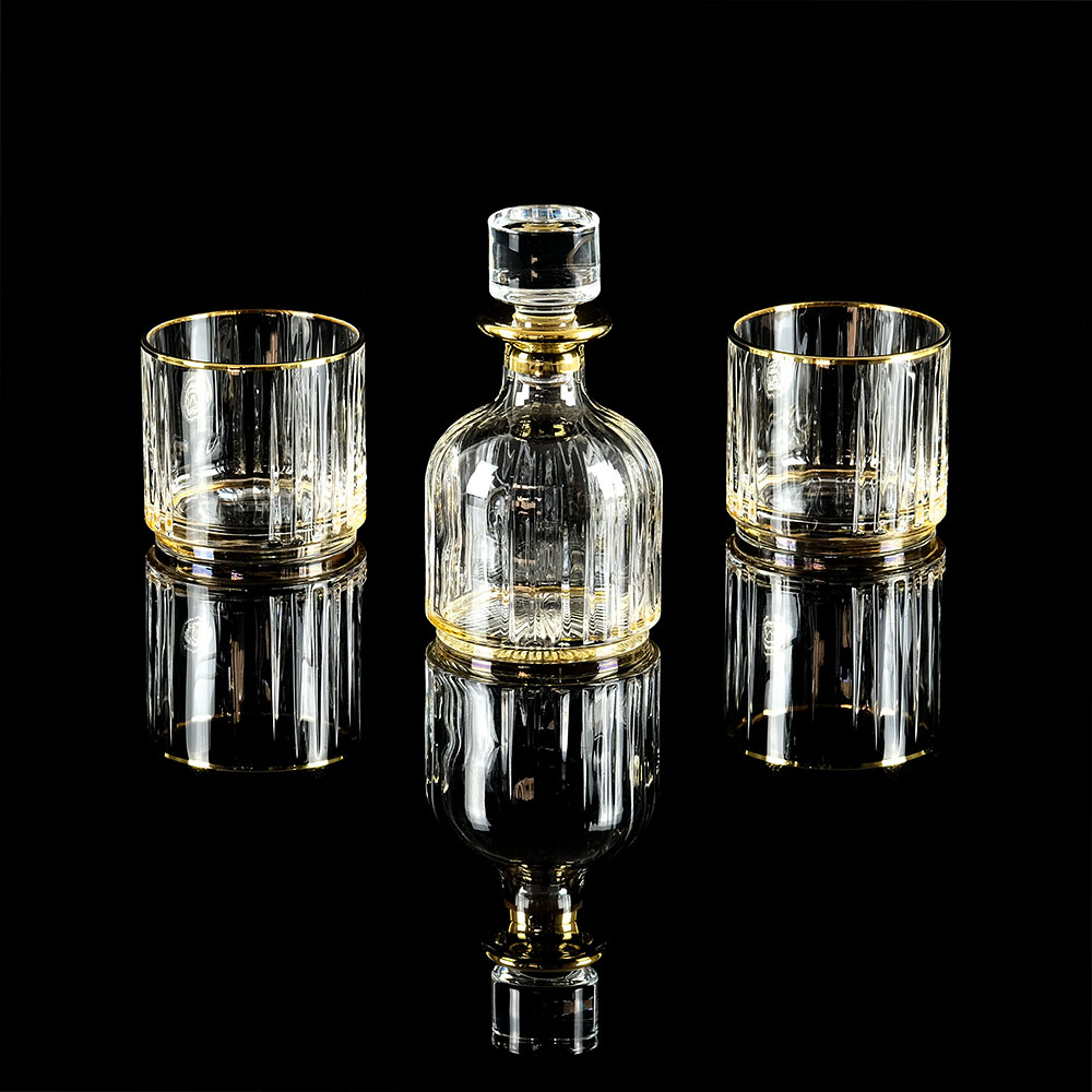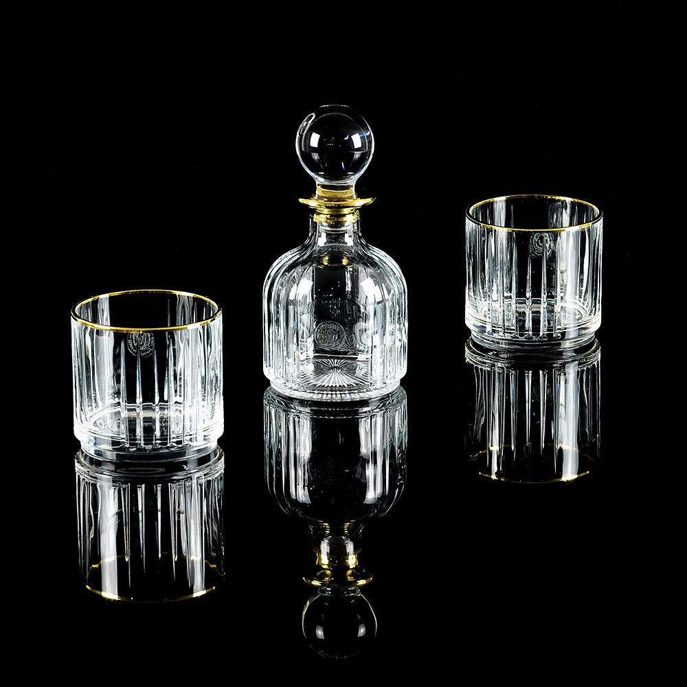 BINGO Whiskey set: decanter 300ml + 2 glasses 300 ml, amber crystal/decor gold 24K, Tube