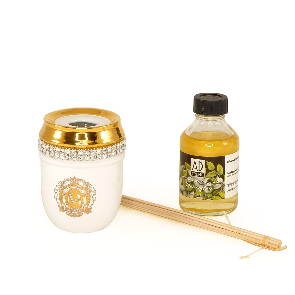 Dispenser, ceramic, color white, decor gold, Crystal, gold holder