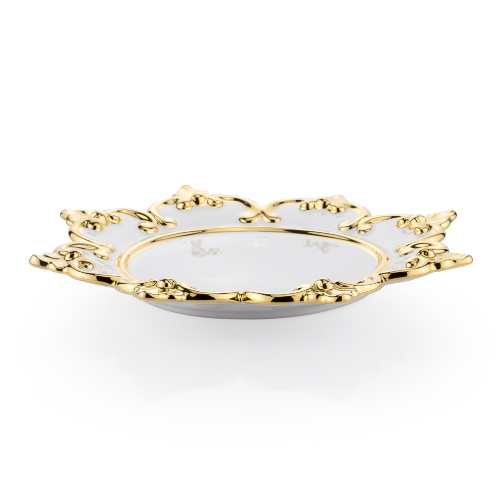 CHRISTMAS Souvenir dish for the crown of the queen d-30,5xH4cm, ceramic, color white, decor gold