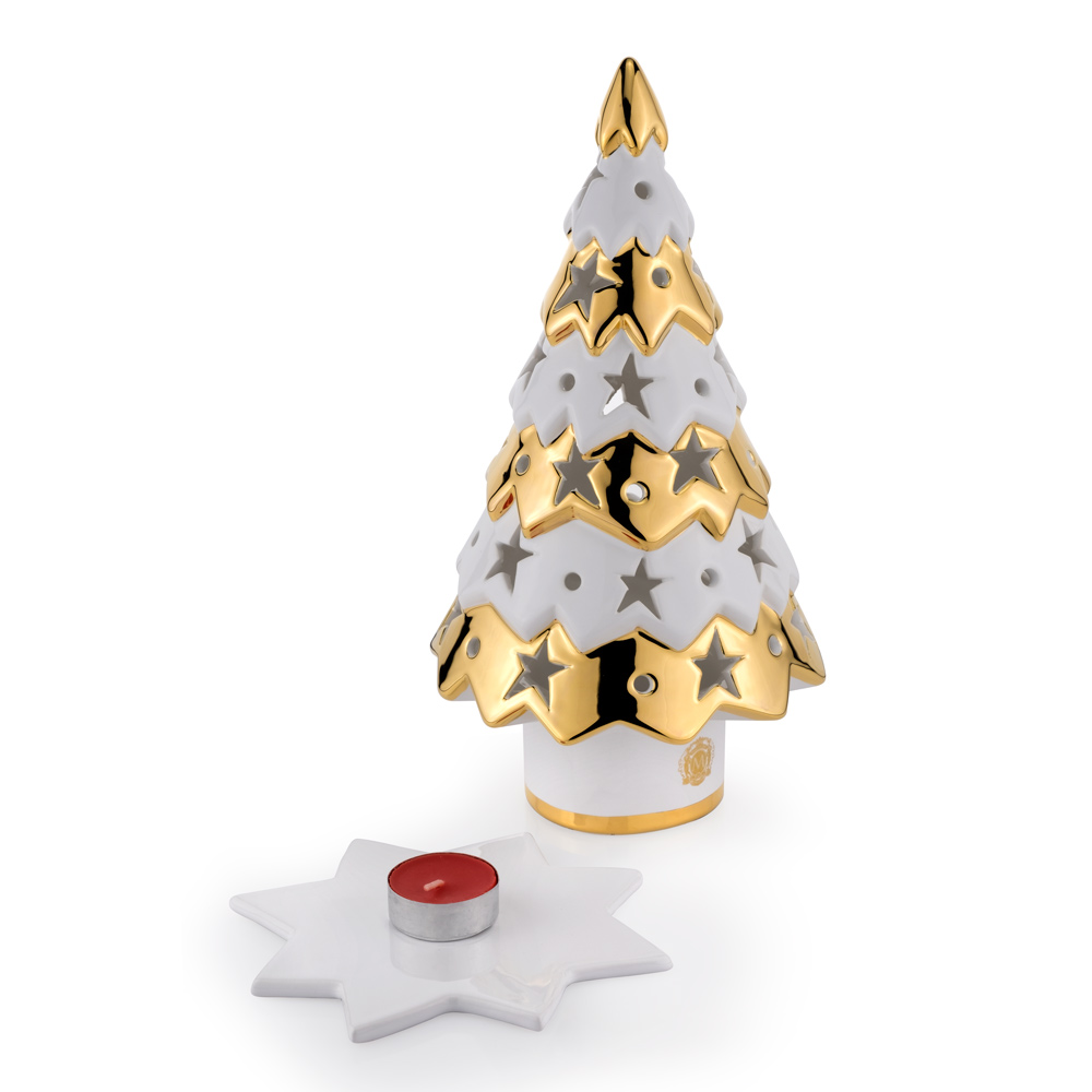CHRISTMAS Souvenir Christmas tree d-30xH34 cm, ceramic, color white, decor gold