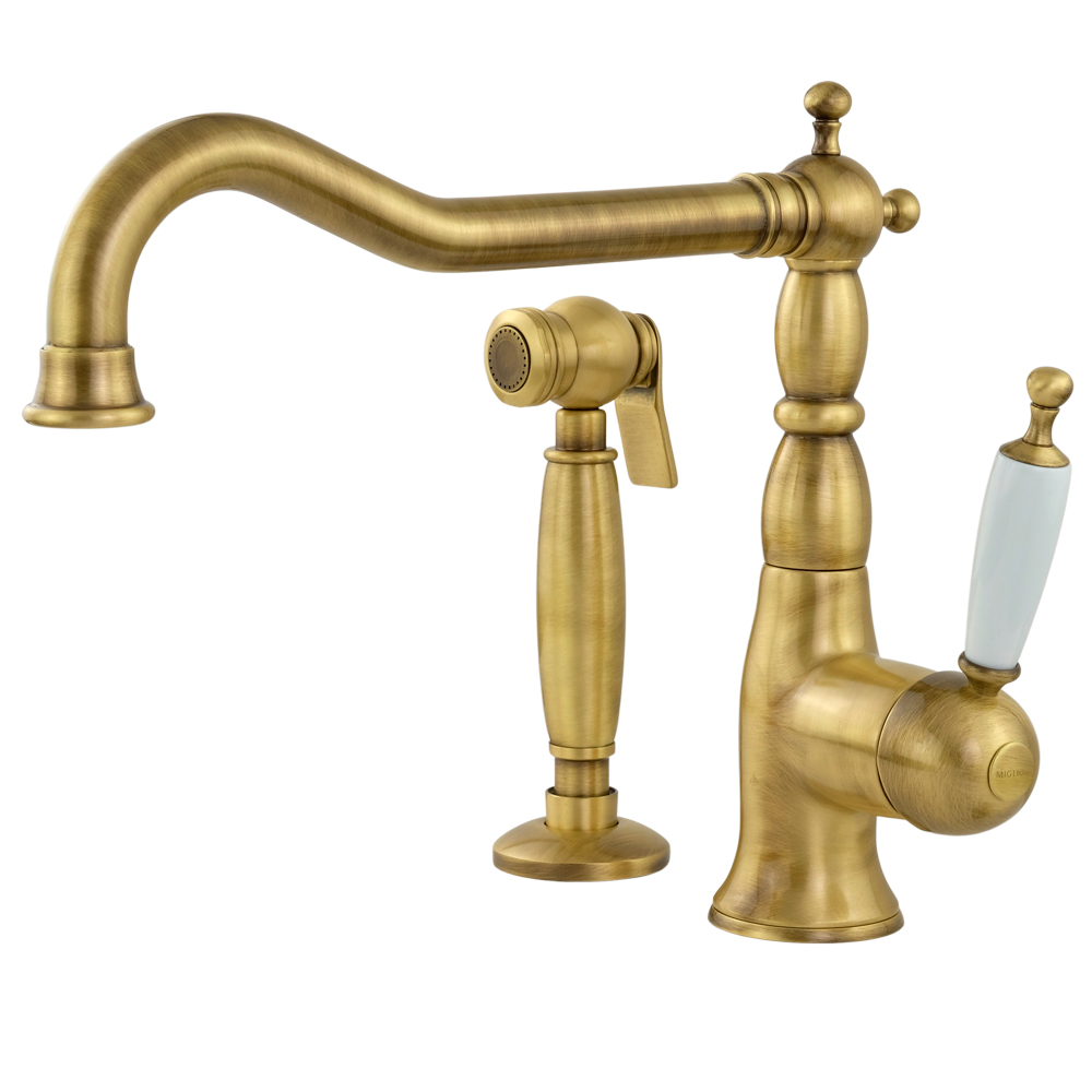 Sink mixer with movable spout and with shut-off shower Queen Nostalgia