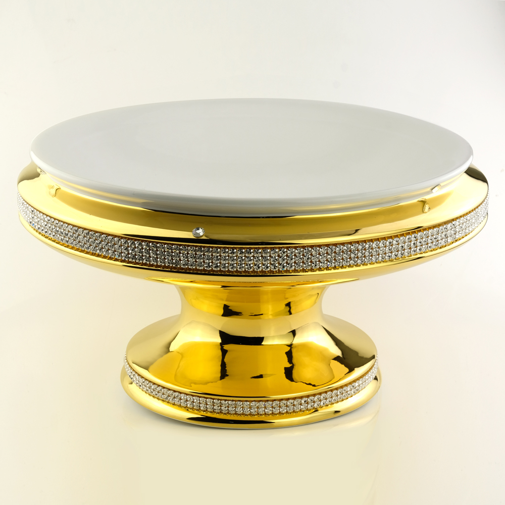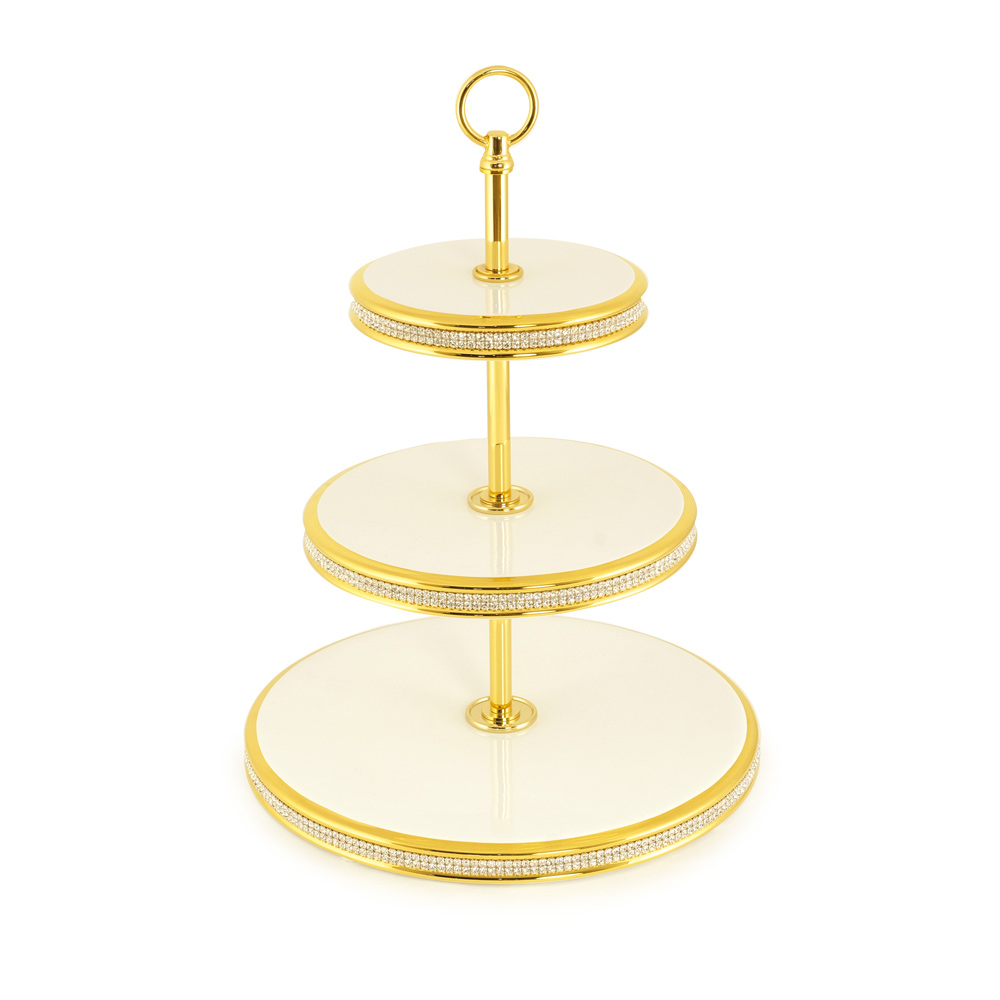 DUBAI Candy bowl 3 tiers D33хН44,5 cm, ceramic/brass, color white, decor gold, Crystal