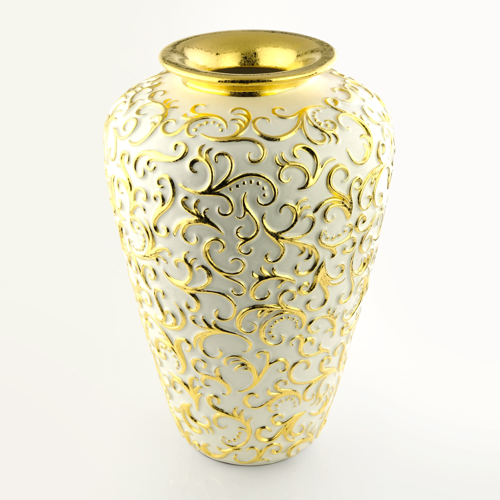 DUBAI Vase D24KHN37.5 cm, ceramic, color white, decor gold, Crystal