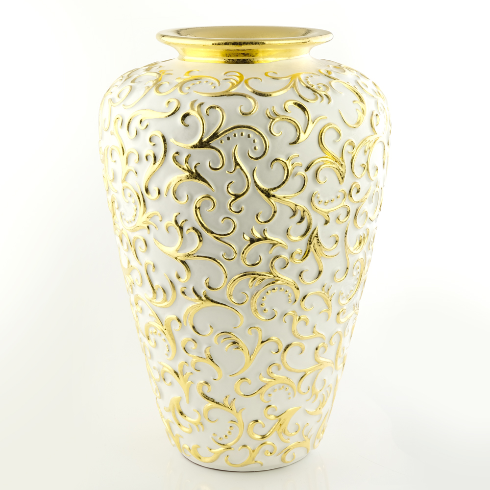 DUBAI Vase D24KHN37.5 cm, ceramic, color white, decor gold, Crystal