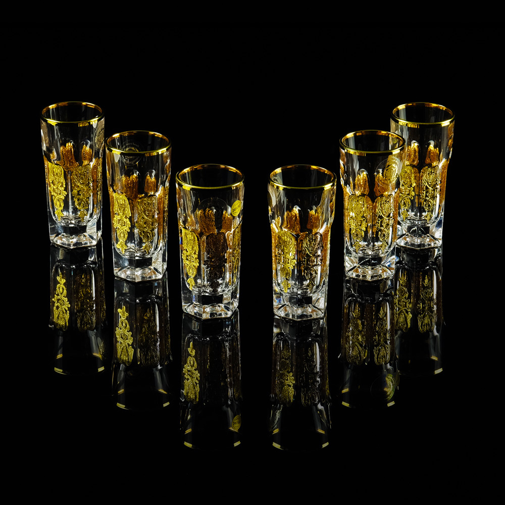 GLORIA Glass 50 ml, set of 6 pcs, crystal/decor gold 24K