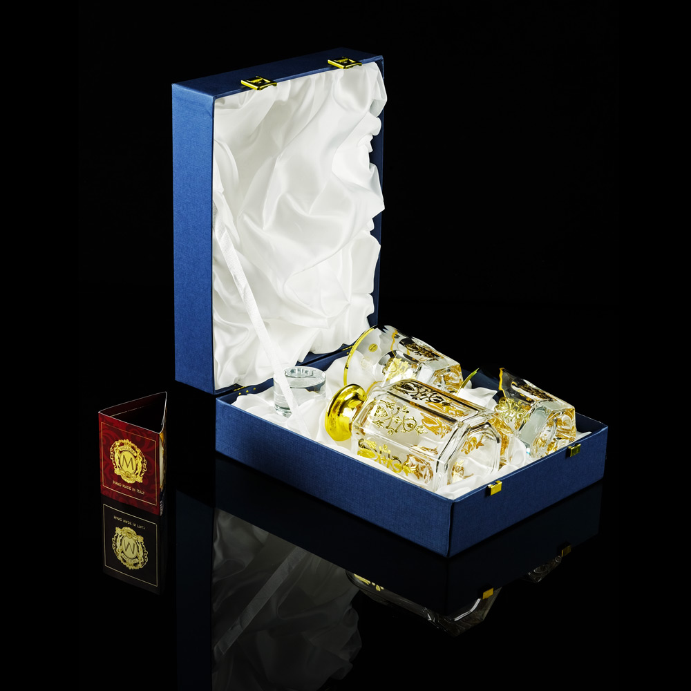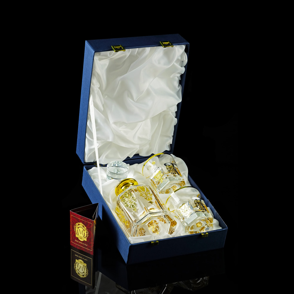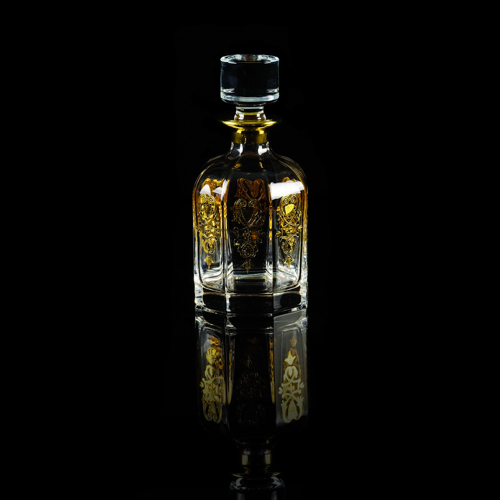 GLORIA Whiskey set: decanter 850ml + 2 glasses 300 ml, crystal/decor gold 24K