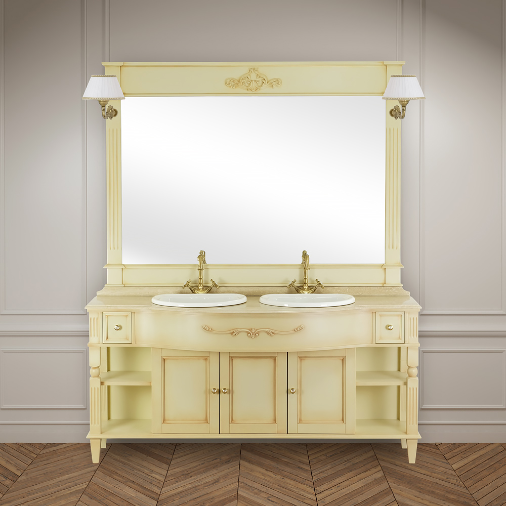 The price includes the cost of a Cabinet, countertop, mirror and two sinks