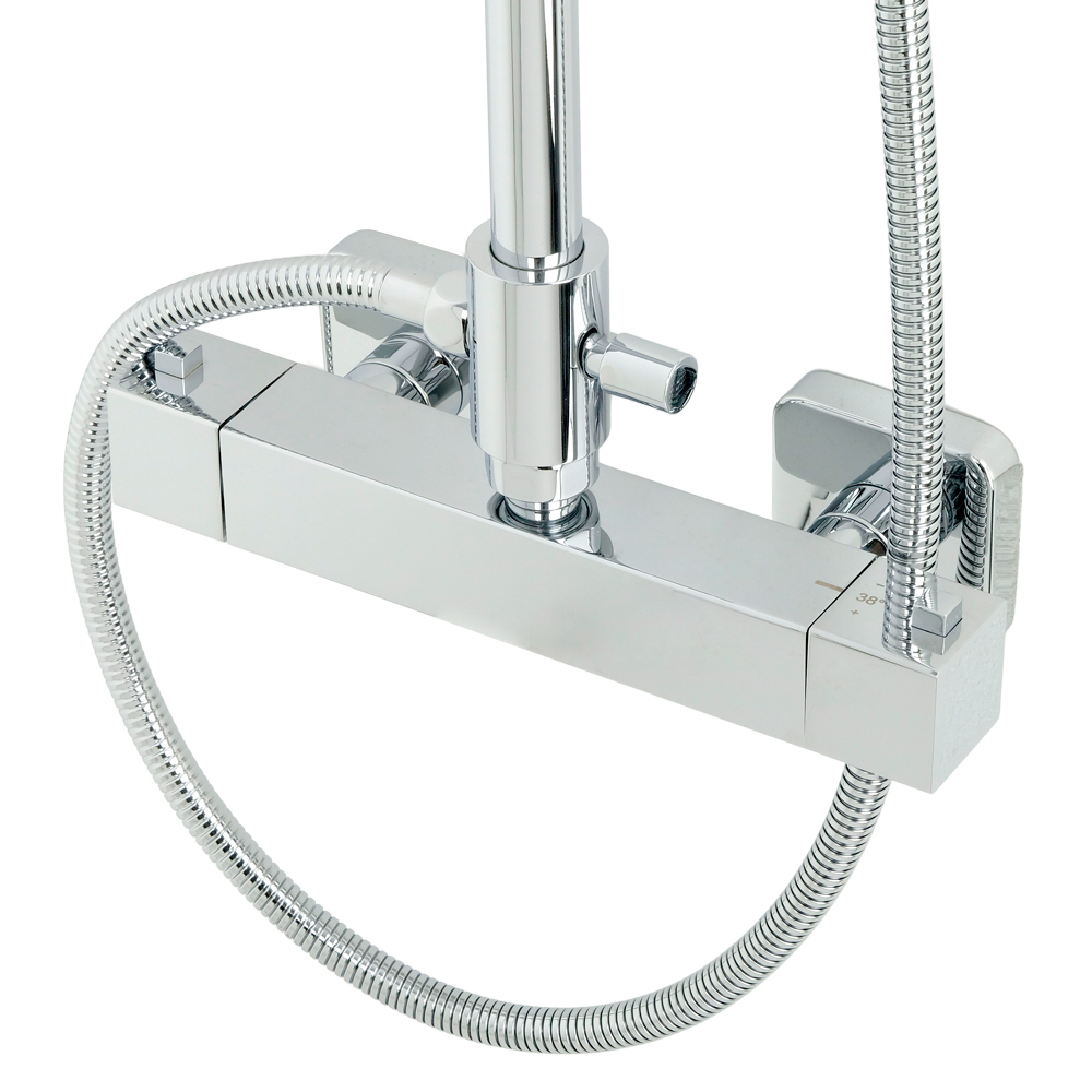 OXFORD. External bath mixer with spout complete of rigid riser and big shower, thermostat