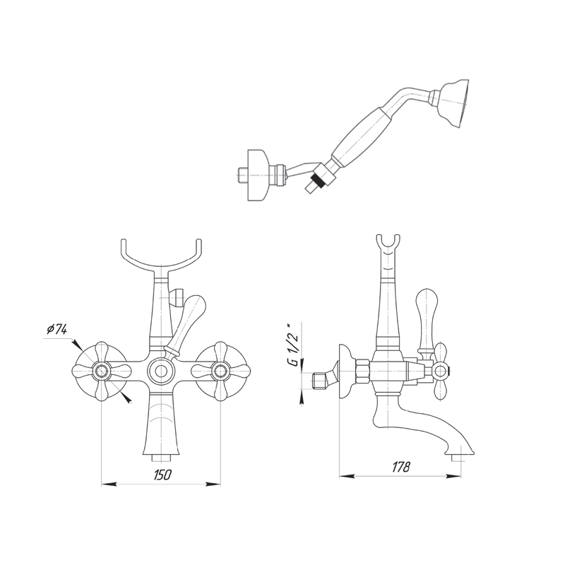 Exposed bathtube mixer with flexible 150 cm and duplex shower with movable spout