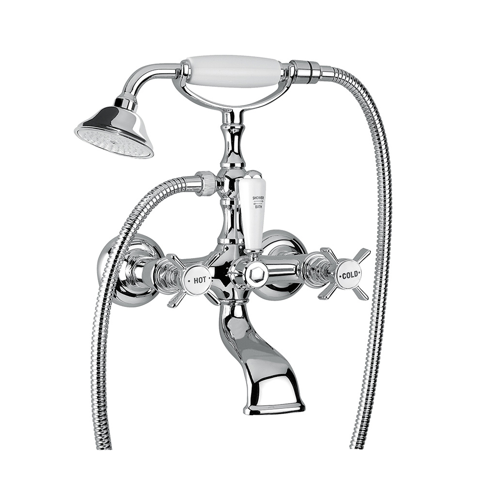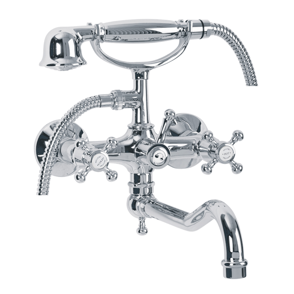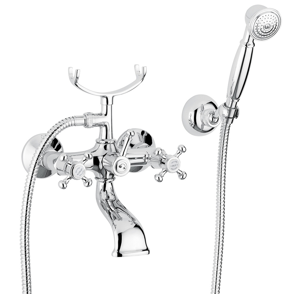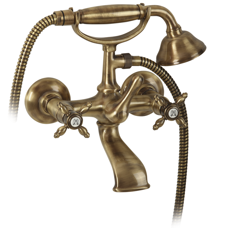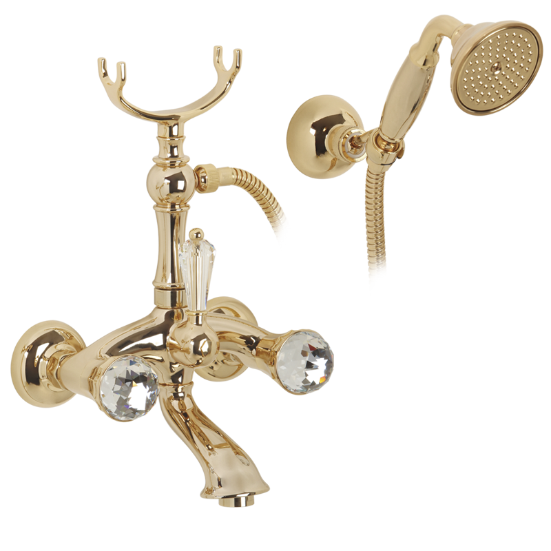 Exposed bathtube mixer with flexible 150 cm and duplex shower, Crystal