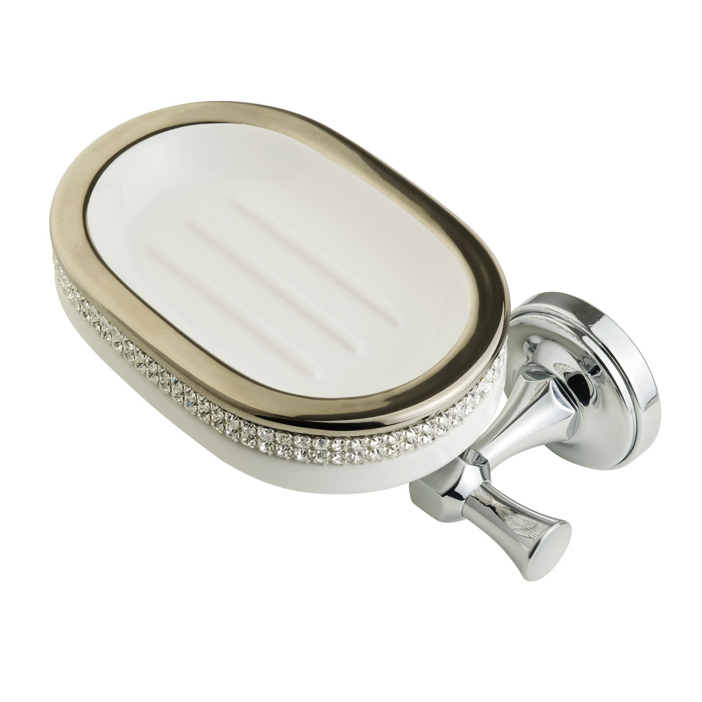 Soap dish, ceramic, color white, decor platinum, Crystal, chrome
