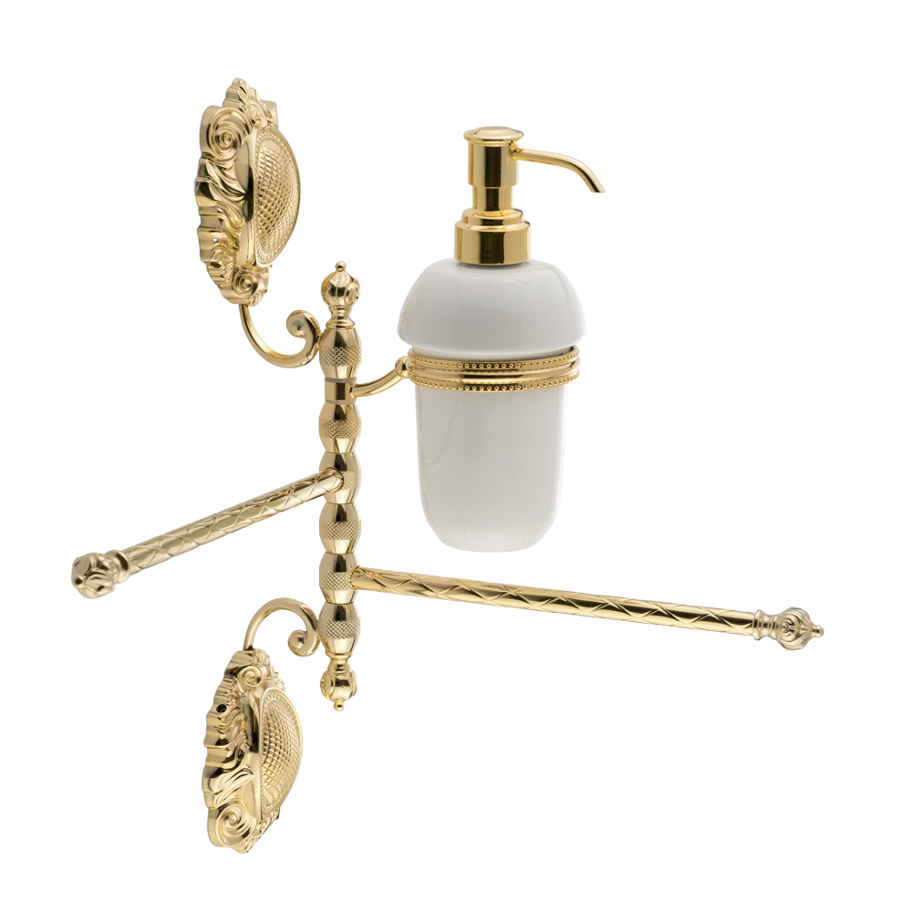 Towel holder with two swivelling arms and with dispenser, Ceramic