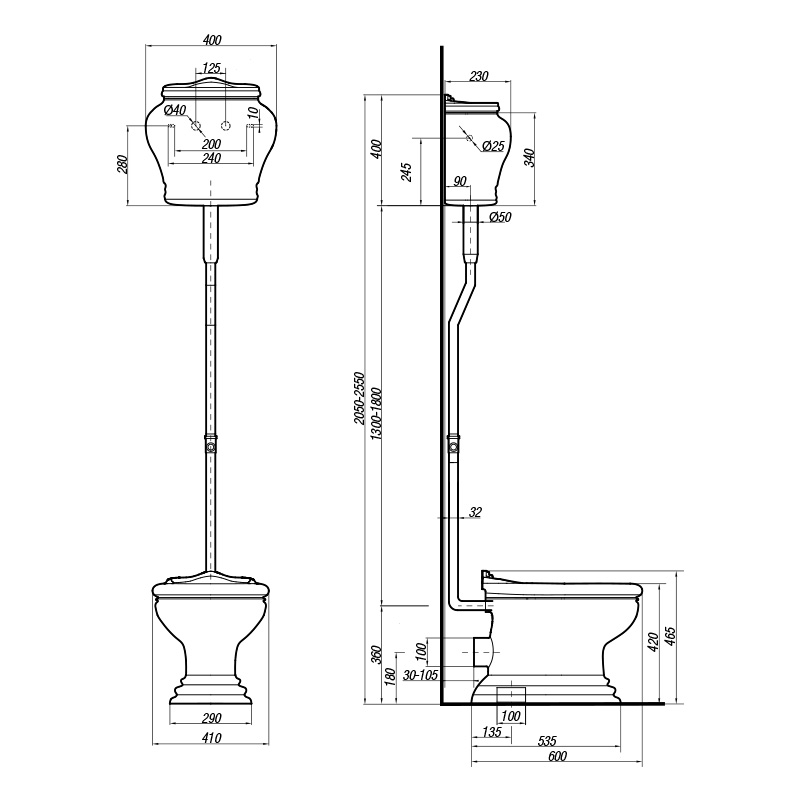 WC high level cistern, Milady