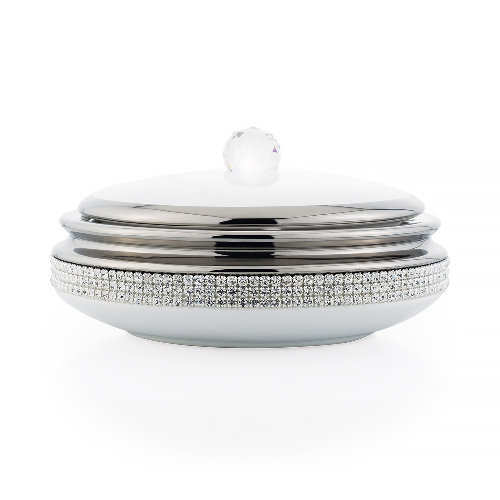Soap dish, ceramic, color white, decor platinum, Crystal, chrome