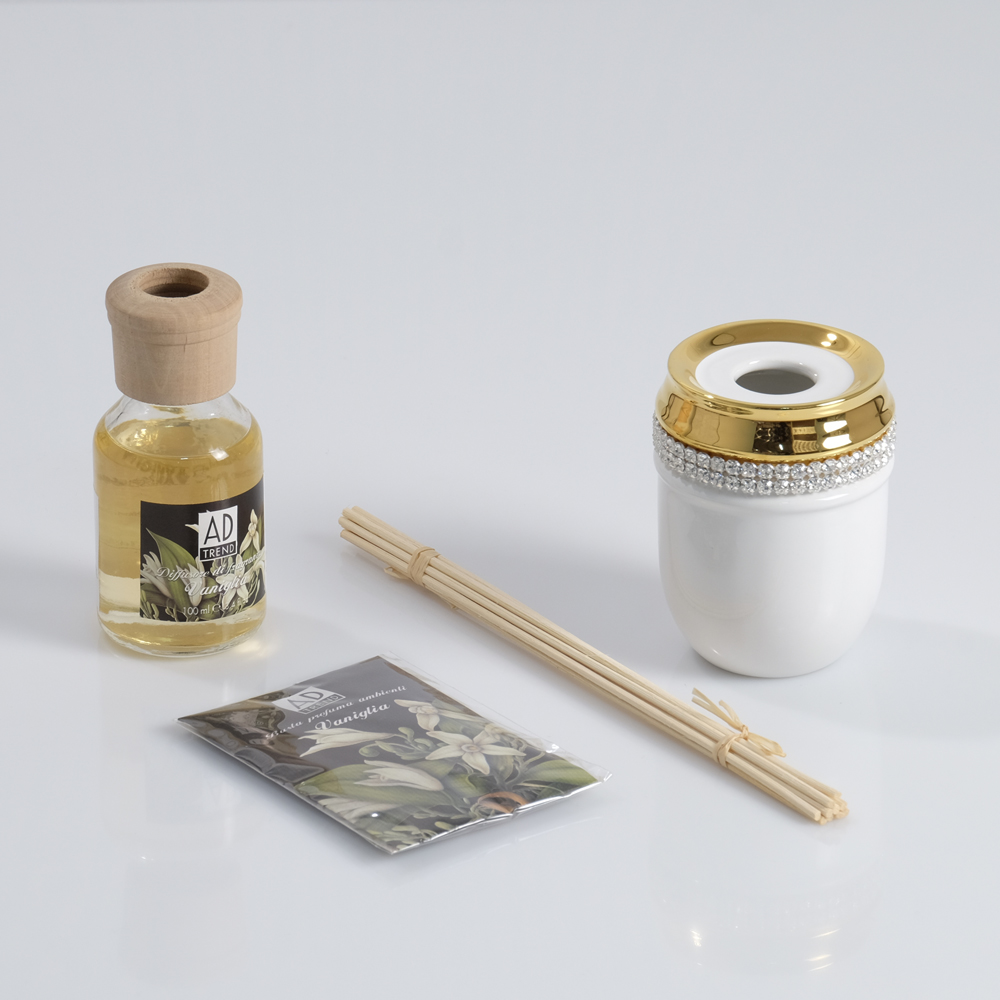 Dispenser, ceramic, color white, decor gold, Crystal, gold holder