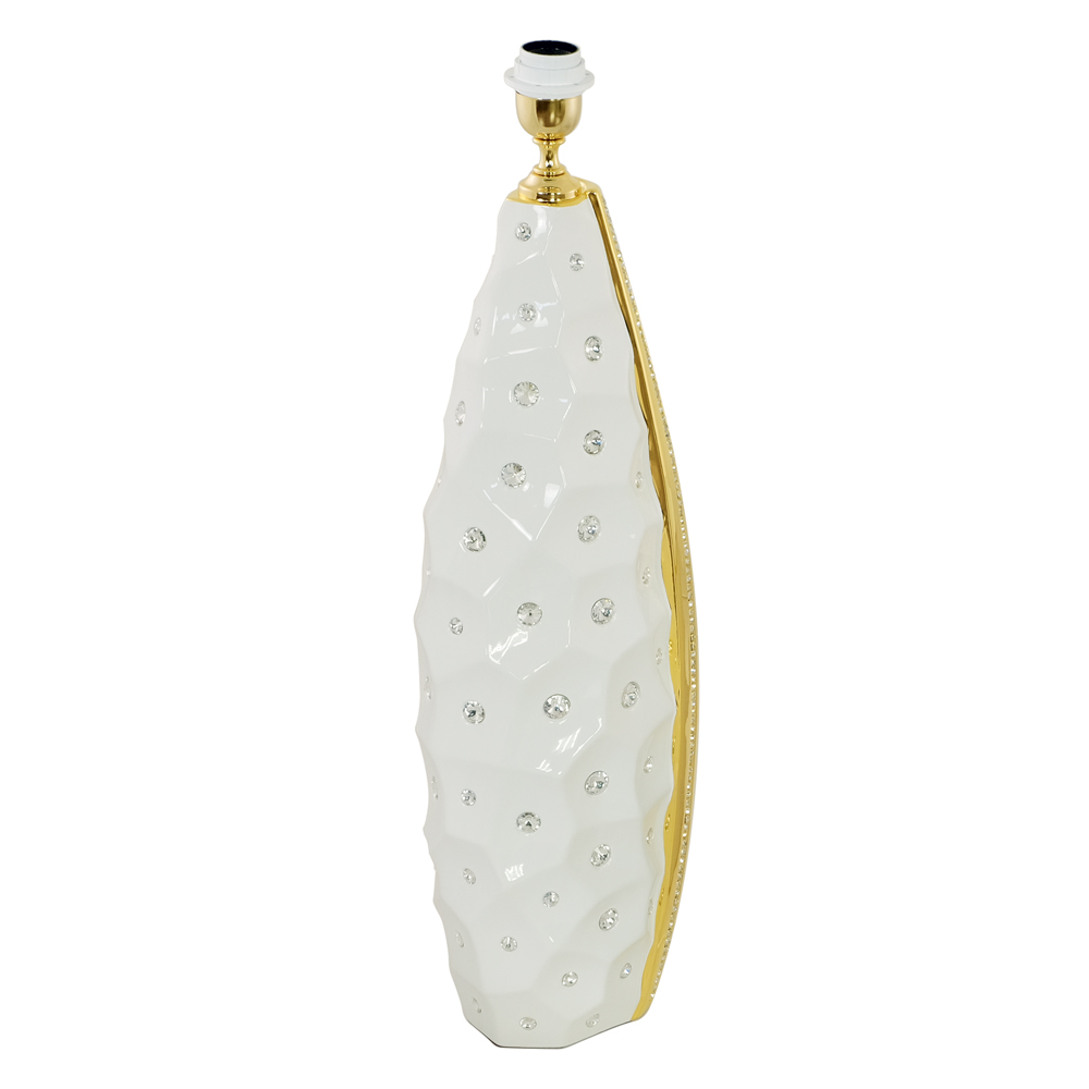 TOKIO Table lamp and lampshade, ceramic, Fabric, color white, decor gold, Crystal