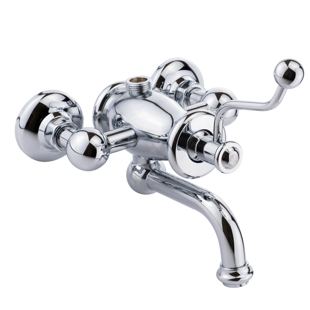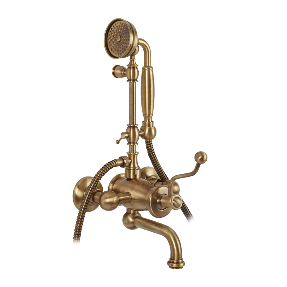 Exposed bathtube mixer with flexible 150 cm and duplex shower, with movable spout