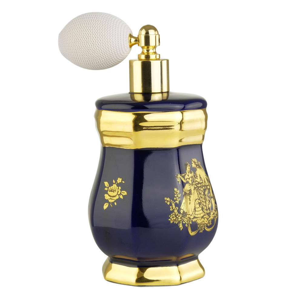 AMANTE BLUE Vaso di profumo con pompa 8x8xh16, 5 cm, ceramica, Colore blu, decorazione oro