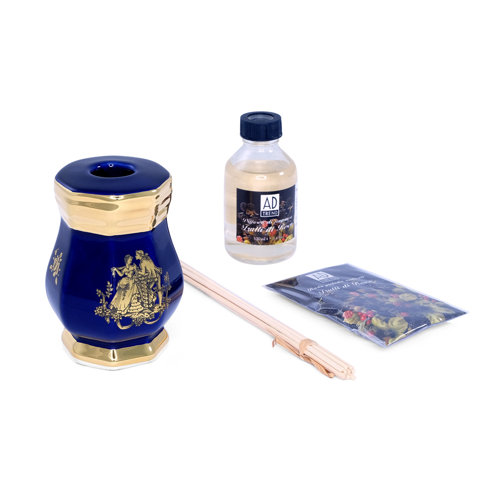 AMANTE BLUE Vaso di profumo con pompa 8x8xh16, 5 cm, ceramica, Colore blu, decorazione oro