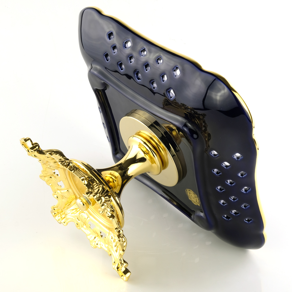 AMANTE BLUE vetro per bastoncini di incenso 8x8xh12 cm, ceramica, Colore blu, decorazione oro