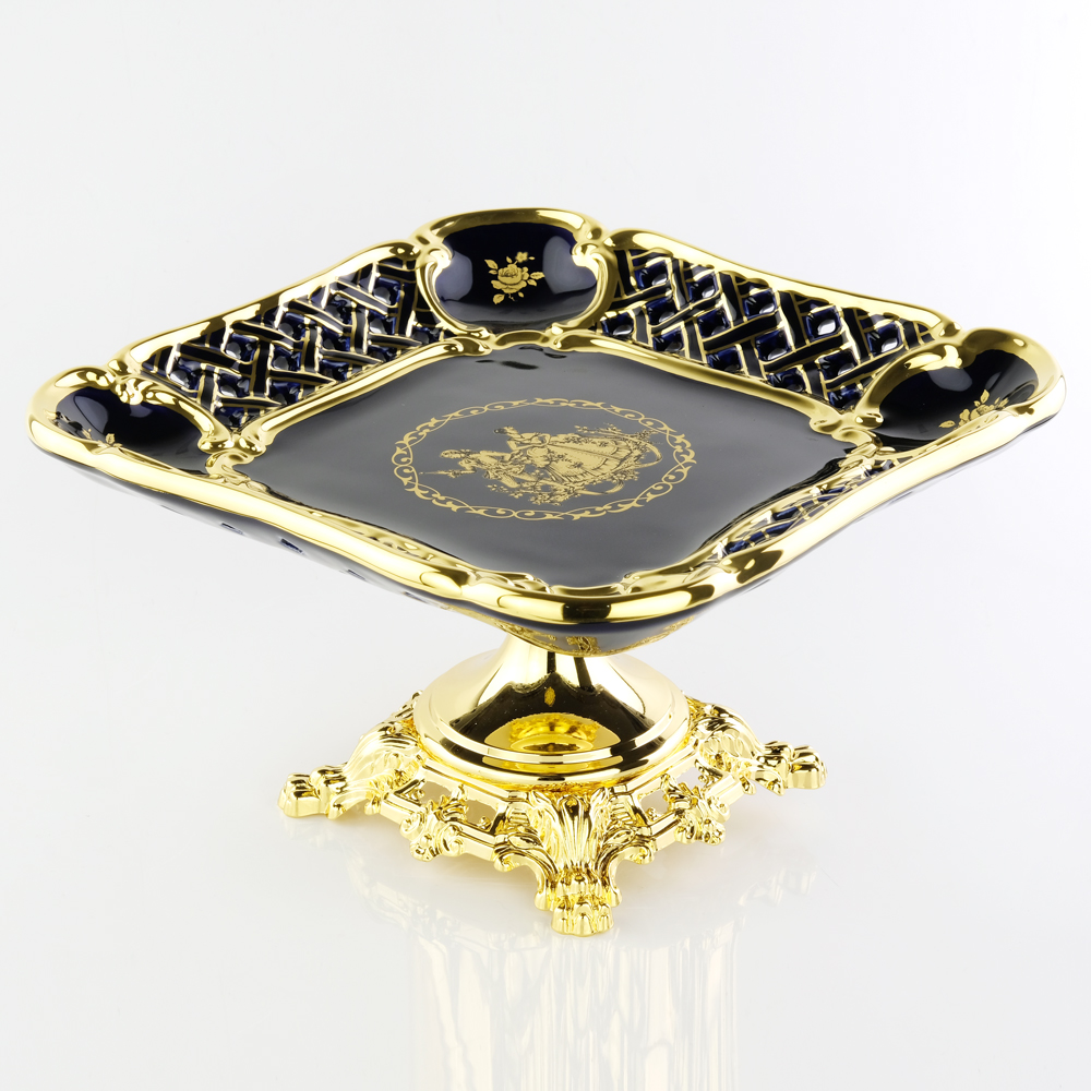 AMANTE BLUE Vaso da tavolo 47x35xh12 cm su gambe, ceramica, Colore blu, decorazione oro