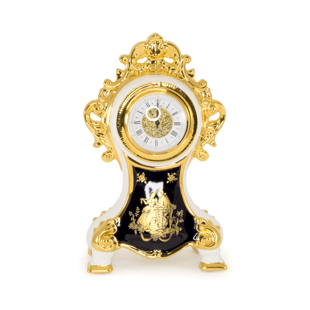 AMANTE BNB Orologio Da Tavolo 23x14x39 cm, ceramica, Colore Bianco / blu, decorazione oro