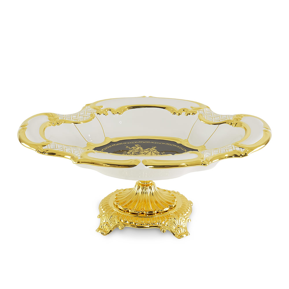AMANTE BNB Vaso da tavolo 47x35xh19 cm sulla base, Ceramica / Ottone, colore bianco / blu, decorazione oro