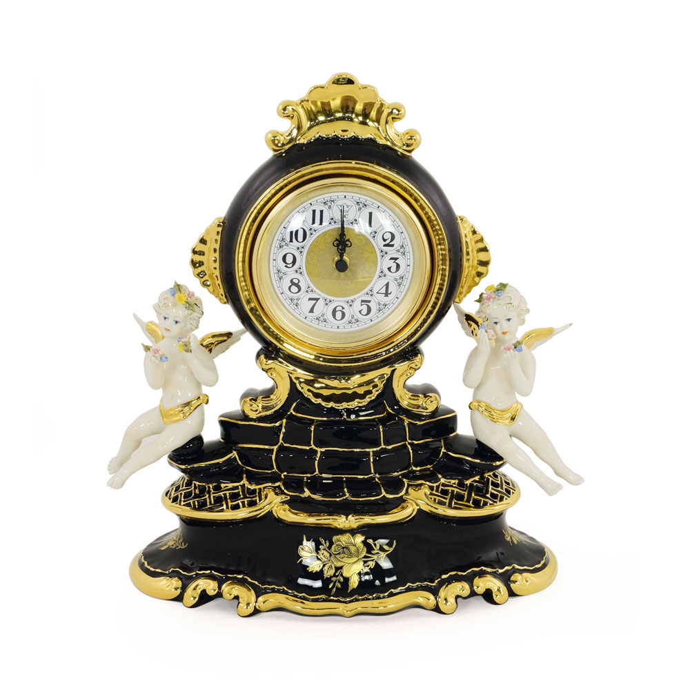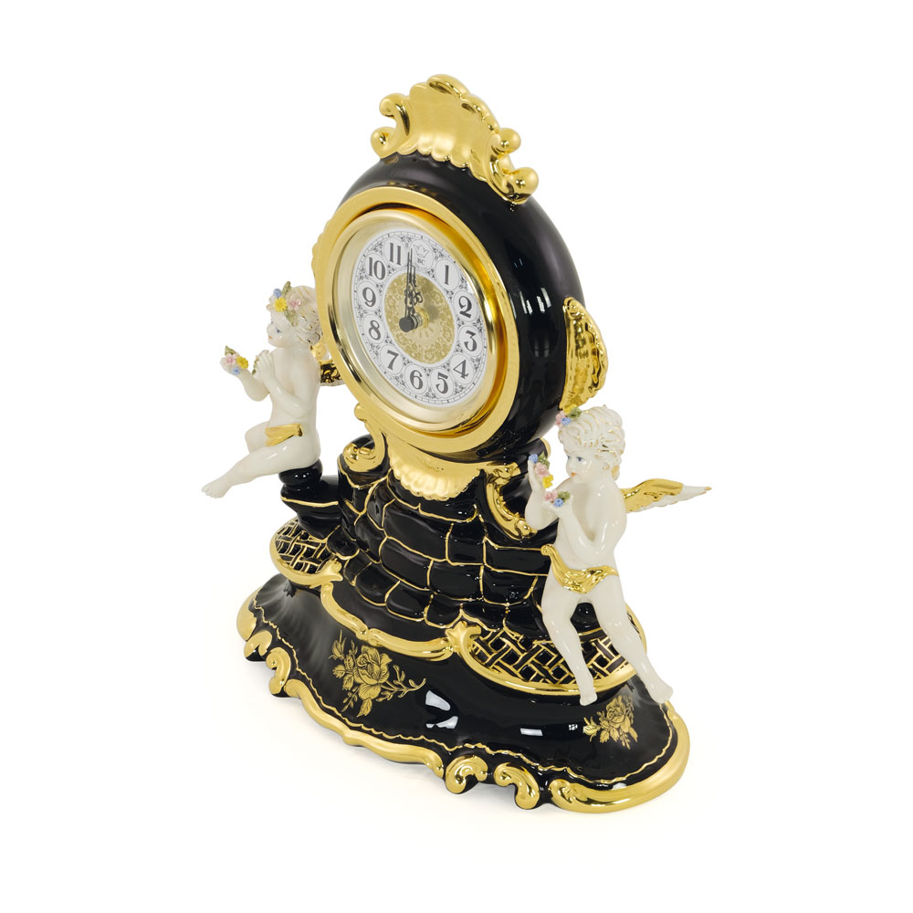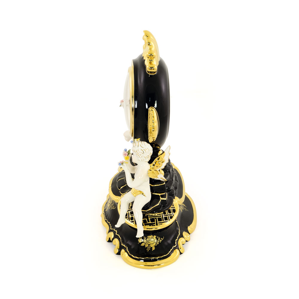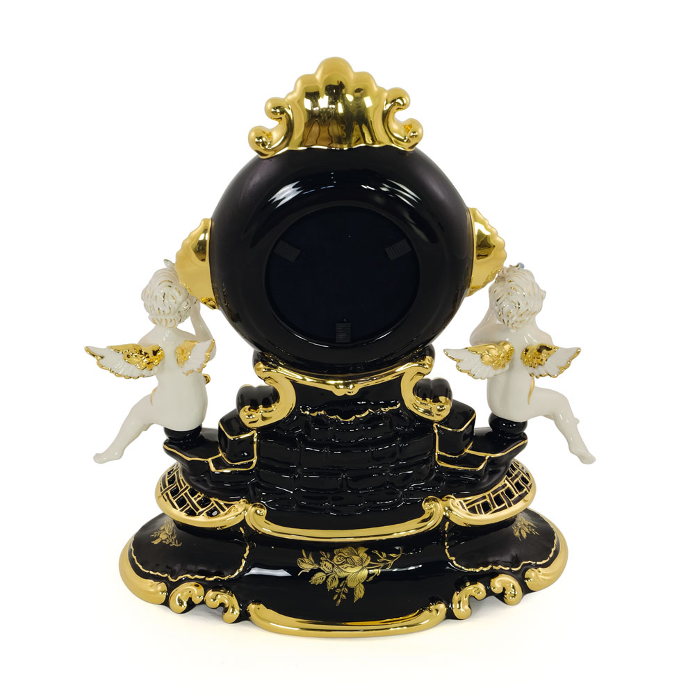 AMANTE BNB Orologio Da Tavolo con angeli N. 40 cm, ceramica, Colore Nero, Decorazione oro