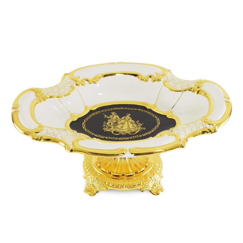 AMANTE BNB Vaso da tavolo 47x35xh19 cm sulla base, Ceramica / Ottone, colore bianco / blu, decorazione oro