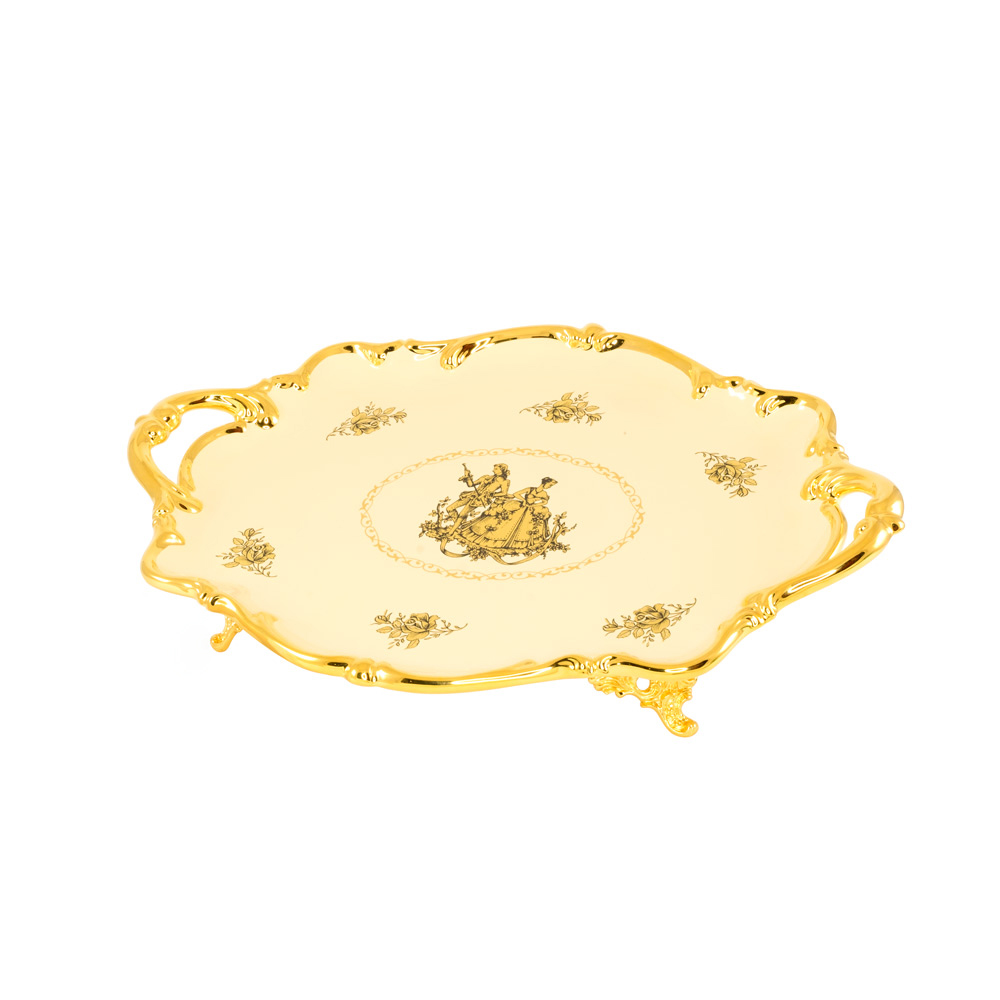 AMANTE CREMA Vassoio con manici 46x32xh10 cm., ceramica, Colore Crema, decorazione oro