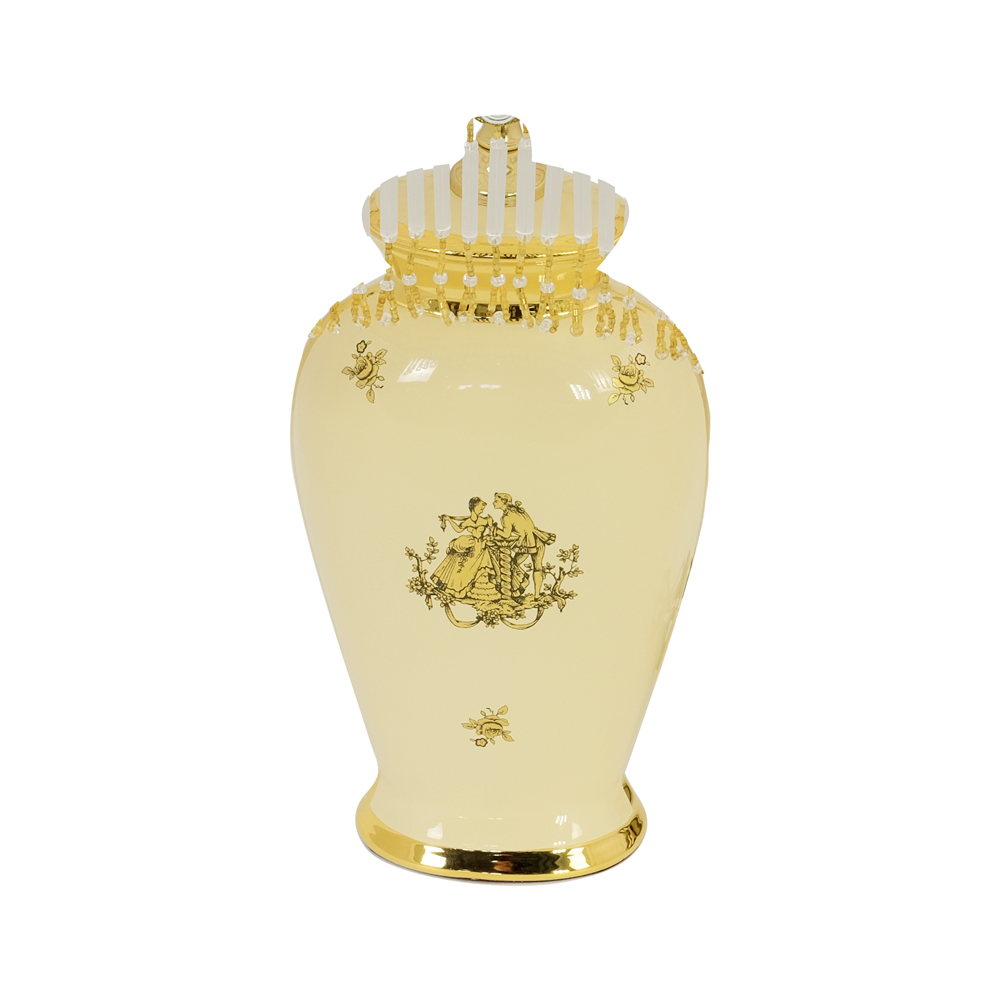 AMANTE CREMA lampada da tavolo (senza paralume) 34x28xH.51 cm., ceramica, Colore Crema, decor oro