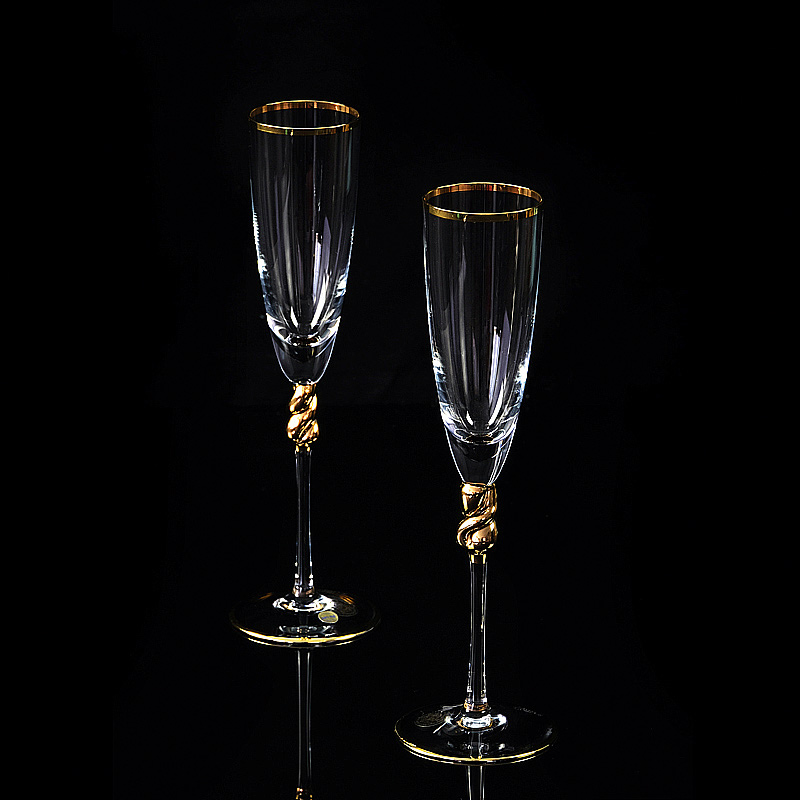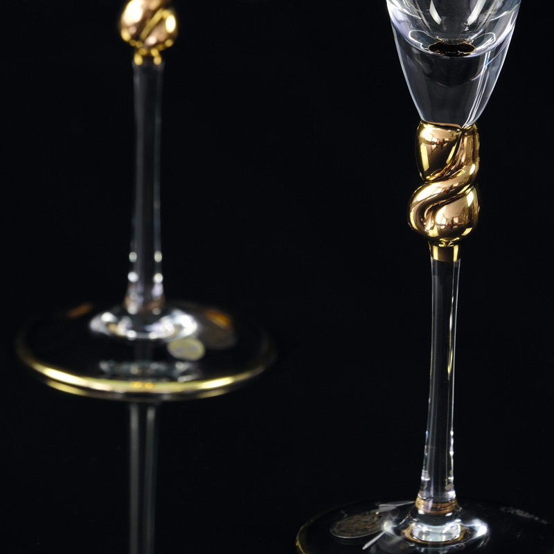AMORE Bicchiere di champagne 150ml, set di 2 pezzi, cristallo / decorazione oro 24K