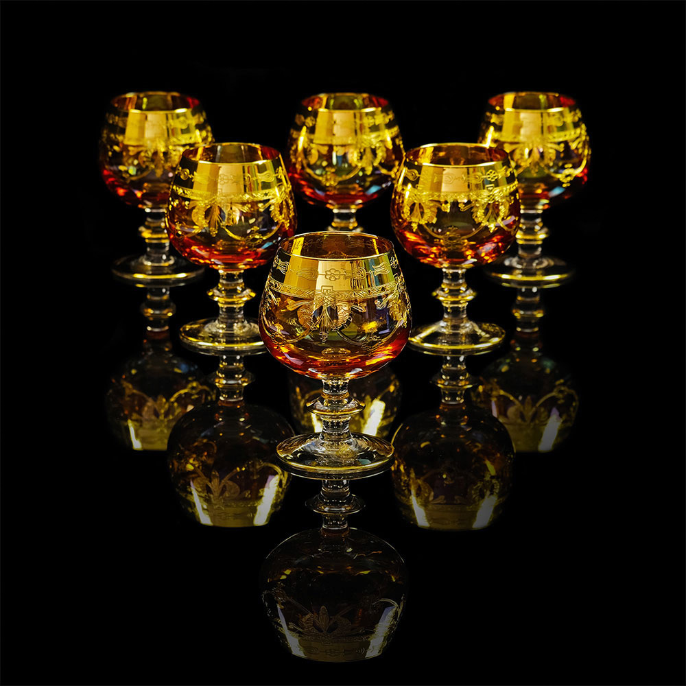 DINASTIA AMBRA Bicchiere di cognac 400ml, set di 6 pezzi, cristallo ambra / decorazione oro 24K