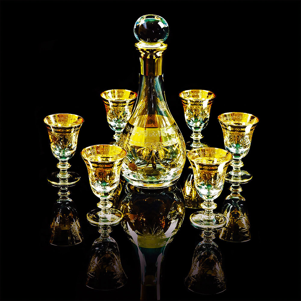 DINASTIA Decanter 1L. H 33cm, cristallo / decorazione oro 24K