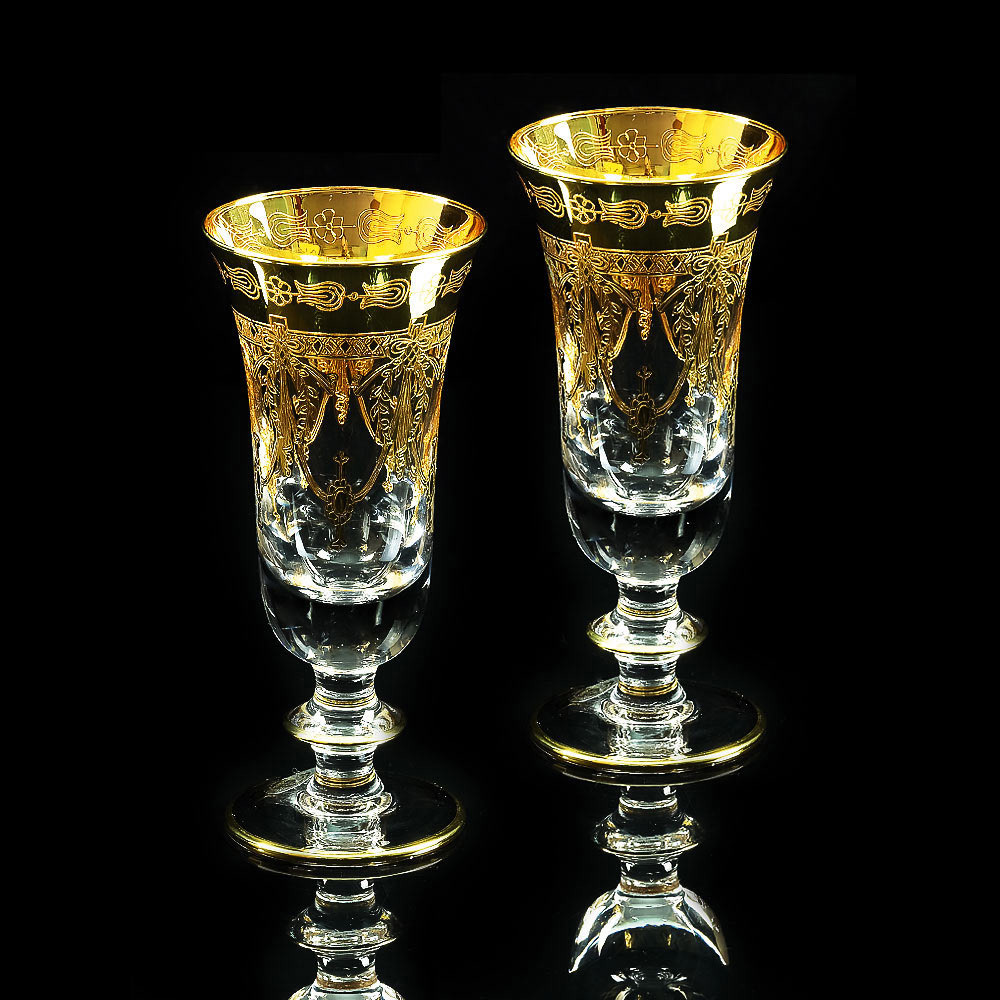 DINASTIA Bicchiere di champagne 220ml, set di 2 pezzi, cristallo / decor oro 24K