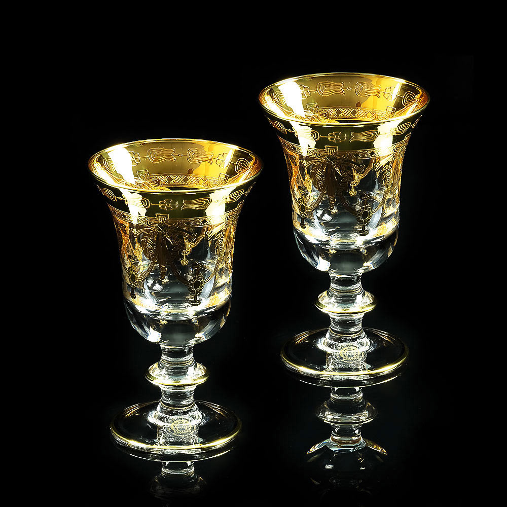 DINASTIA Bicchiere da vino / acqua da 220 ml, set da 2 pezzi, cristallo / decorazione oro 24 carati