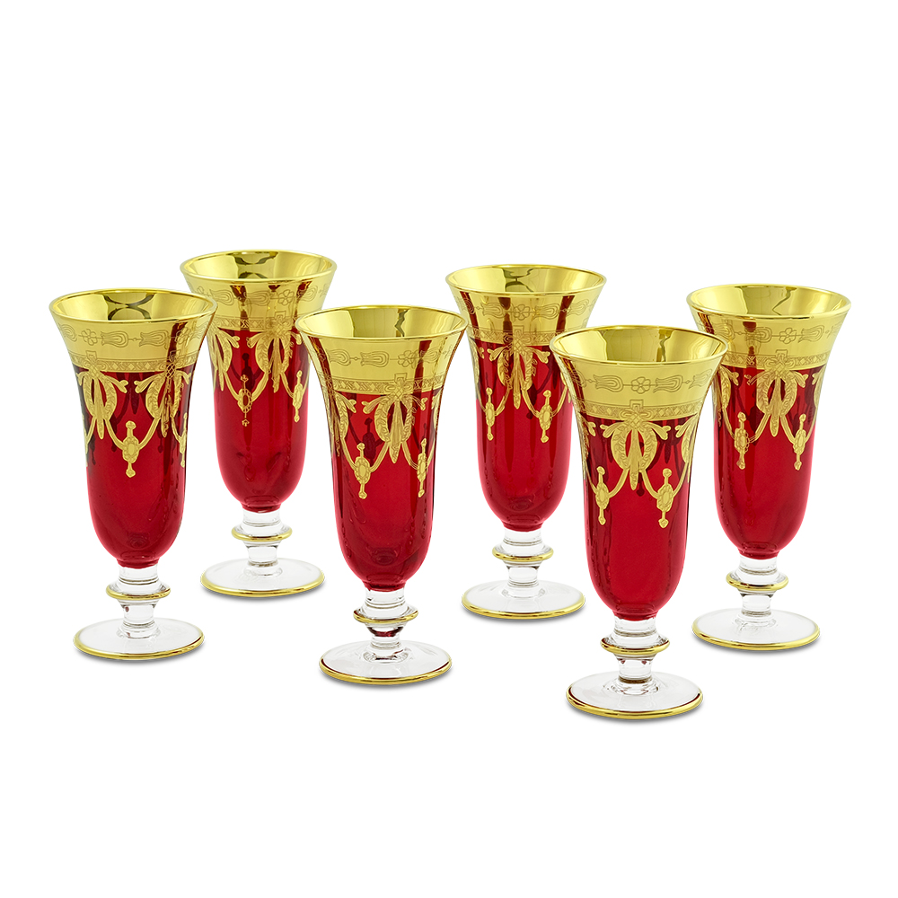 DINASTIA ROSSO Bicchiere di champagne 220ml, set di 6 pezzi, cristallo rosso / DECOR oro 24K