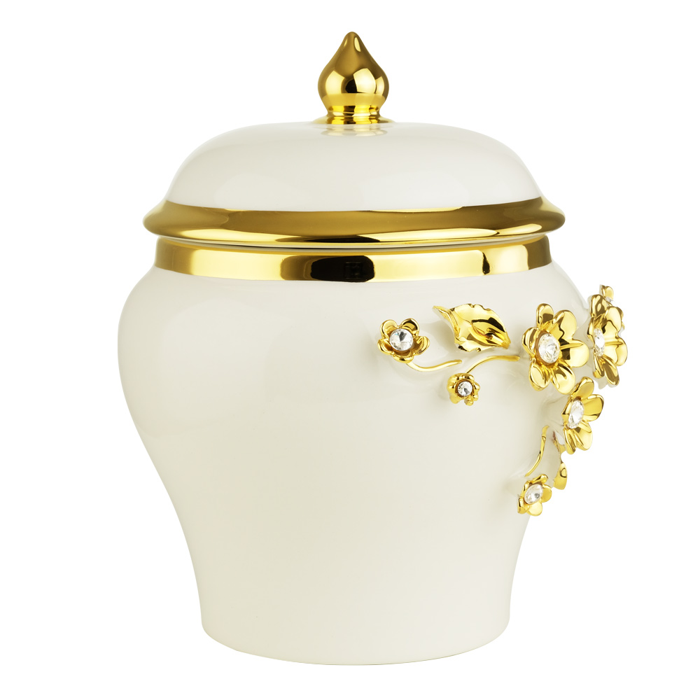 EMOZIONI Vaso con coperchio D12,5хН16cm, ceramica, Colore Bianco, Decorazione oro, Crystal