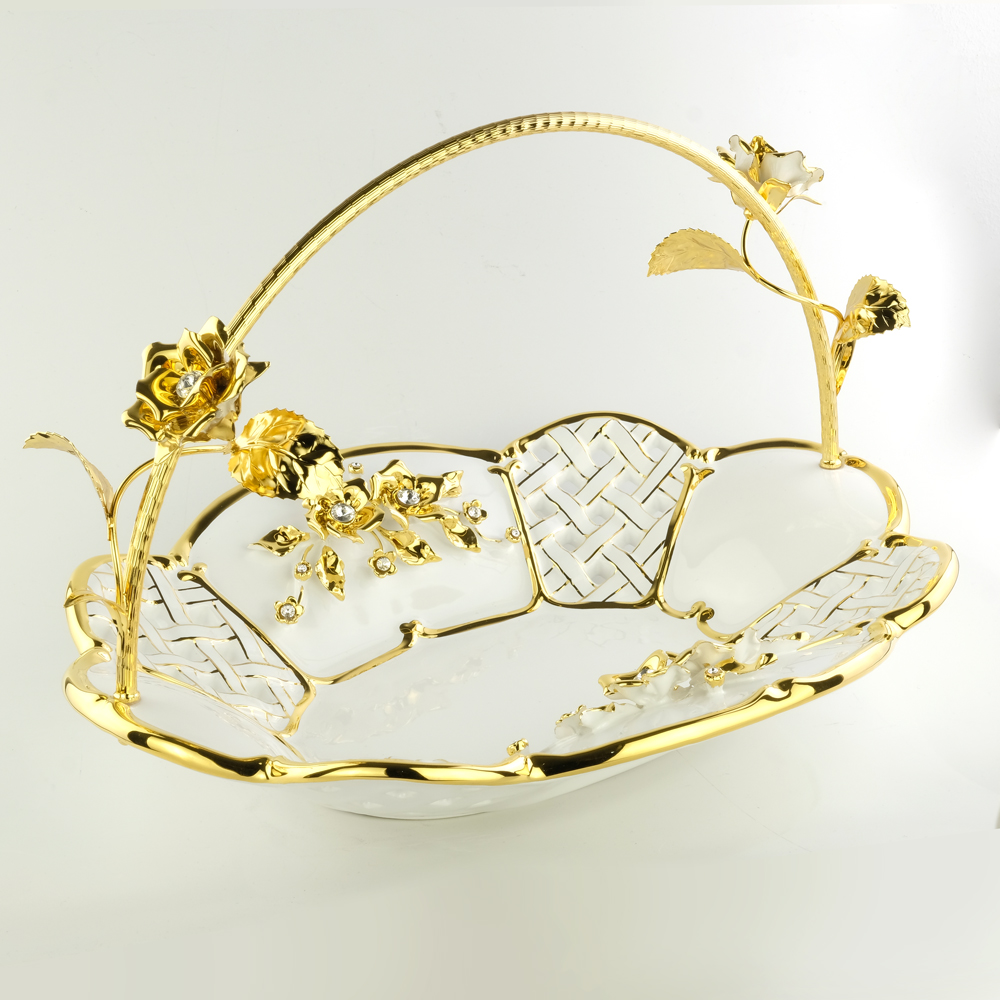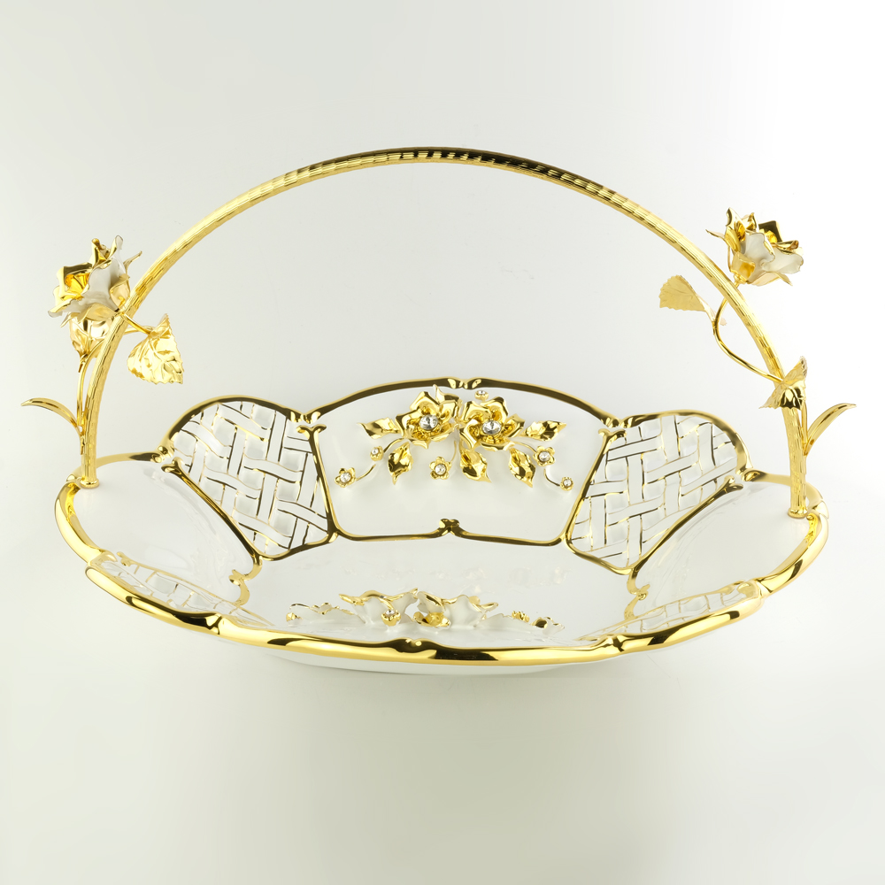 EMOZIONI Piatto con manico 41x32hn.26 cm, ceramica, Colore Bianco, Decorazione oro, cristallo