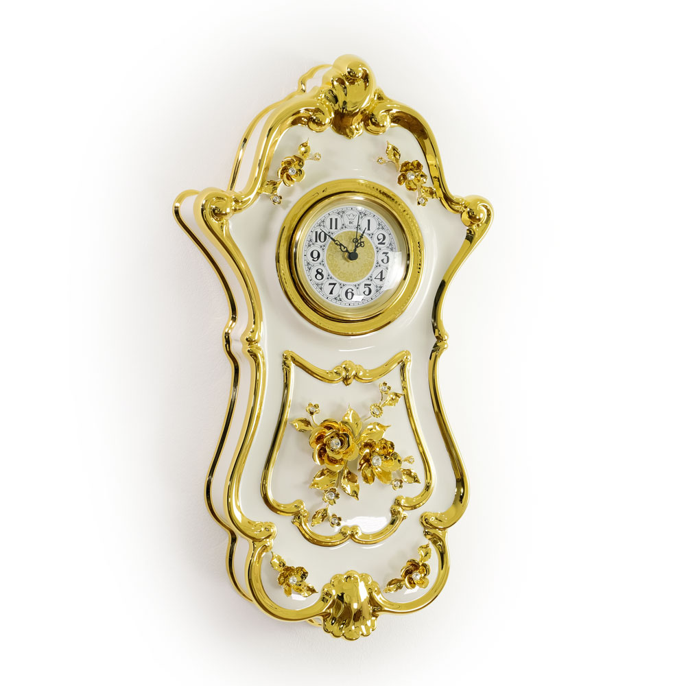 EMOZIONI Orologio Da Parete, Decor Fiori 32хН56 cm, ceramica, Colore bianco, decor oro, cristallo