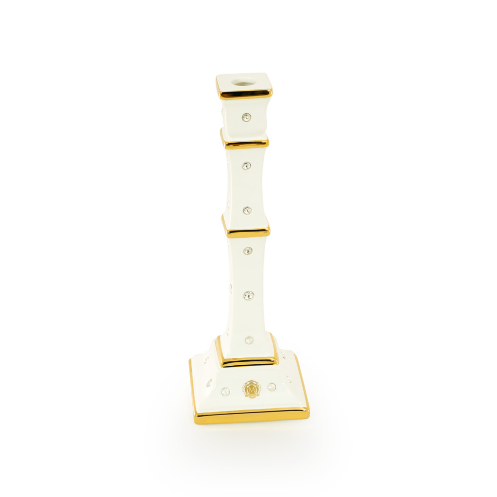 EMOZIONI Portacandele singolo H36cm, ceramica, Colore Bianco, Decorazione oro, cristallo