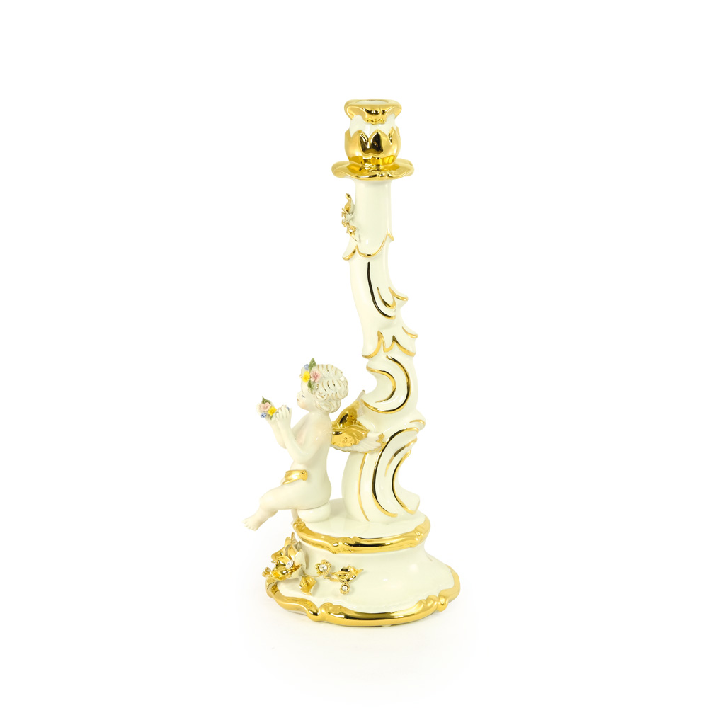 EMOZIONI Candeliere singolo con Angelo destra 17xh41, ceramica, Colore Bianco, Decorazione oro, cristallo