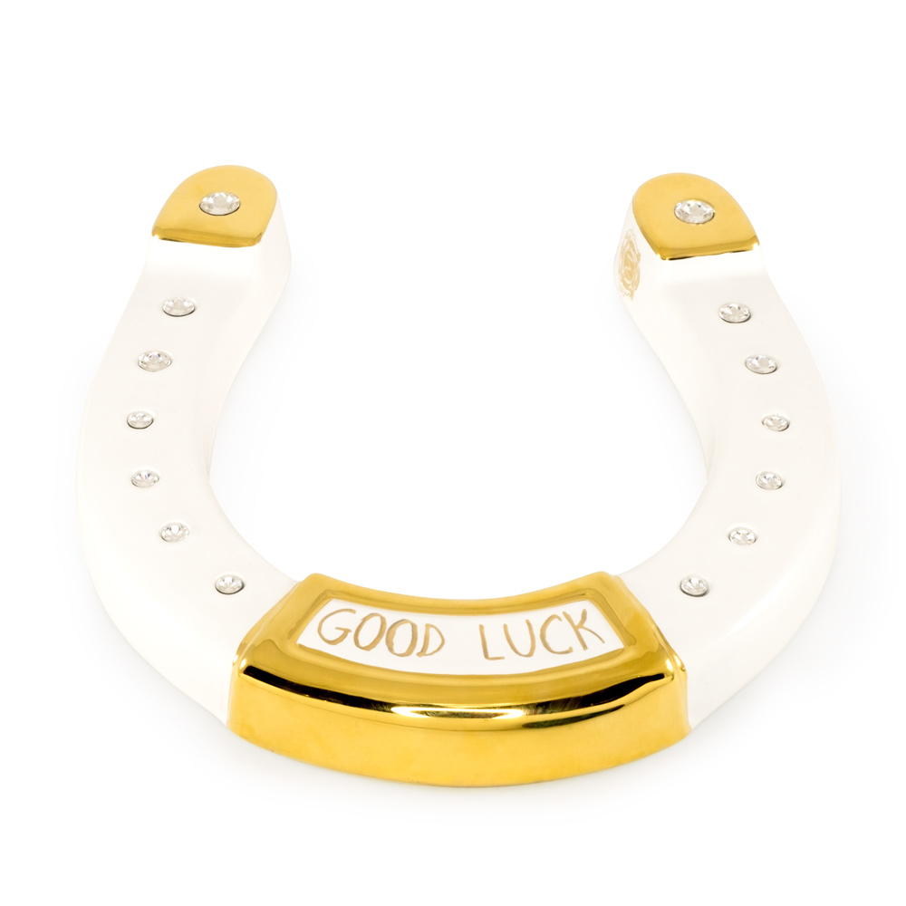 EMOZIONI Souvenir ferro di cavallo 20xh23cm, ceramica, colore e decorazione oro, cristallo