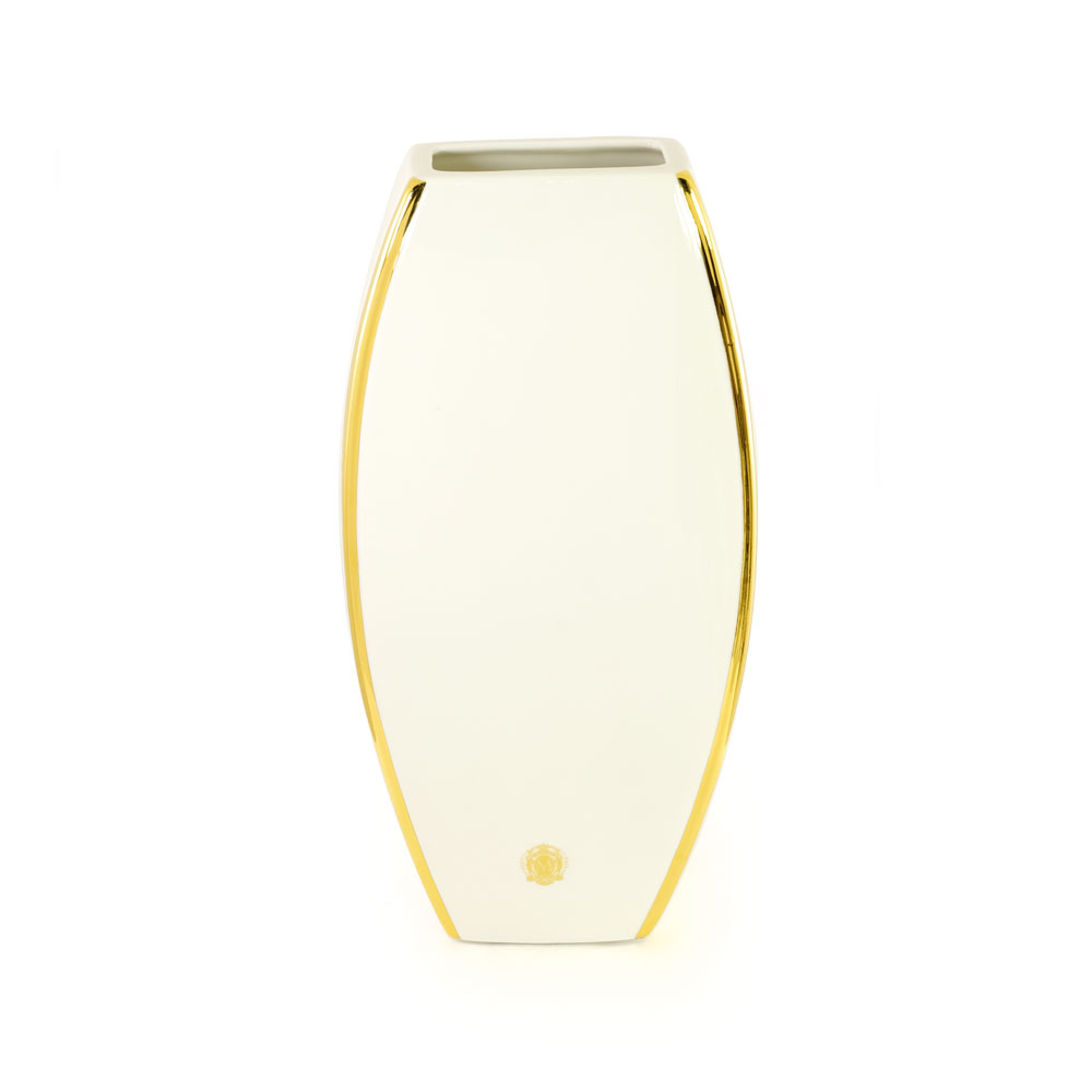 EMOZIONI Vaso, decorazione fiori 13x7xН.25 cm, ceramica, Colore Bianco, Decorazione oro, cristallo