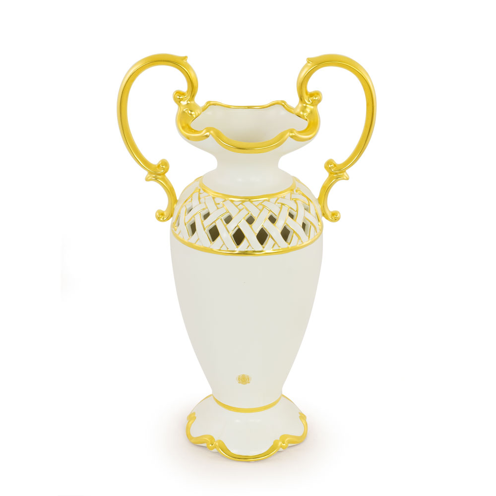 FIORI GOLD Vaso con manici 32x22xh54 cm, ceramica, Colore Bianco, Decorazione oro