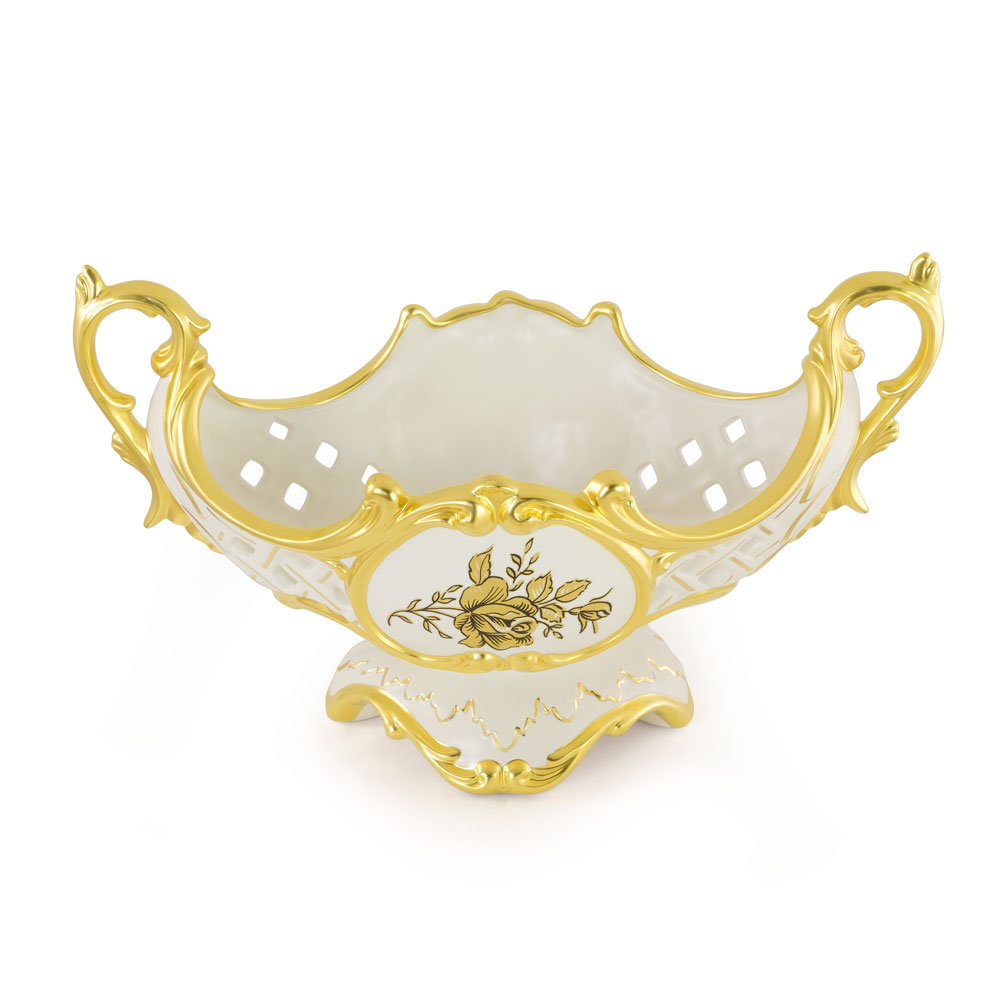 FIORI GOLD Vaso da tavolo 41x23xh25 cm, ceramica, Colore Bianco, Decorazione oro